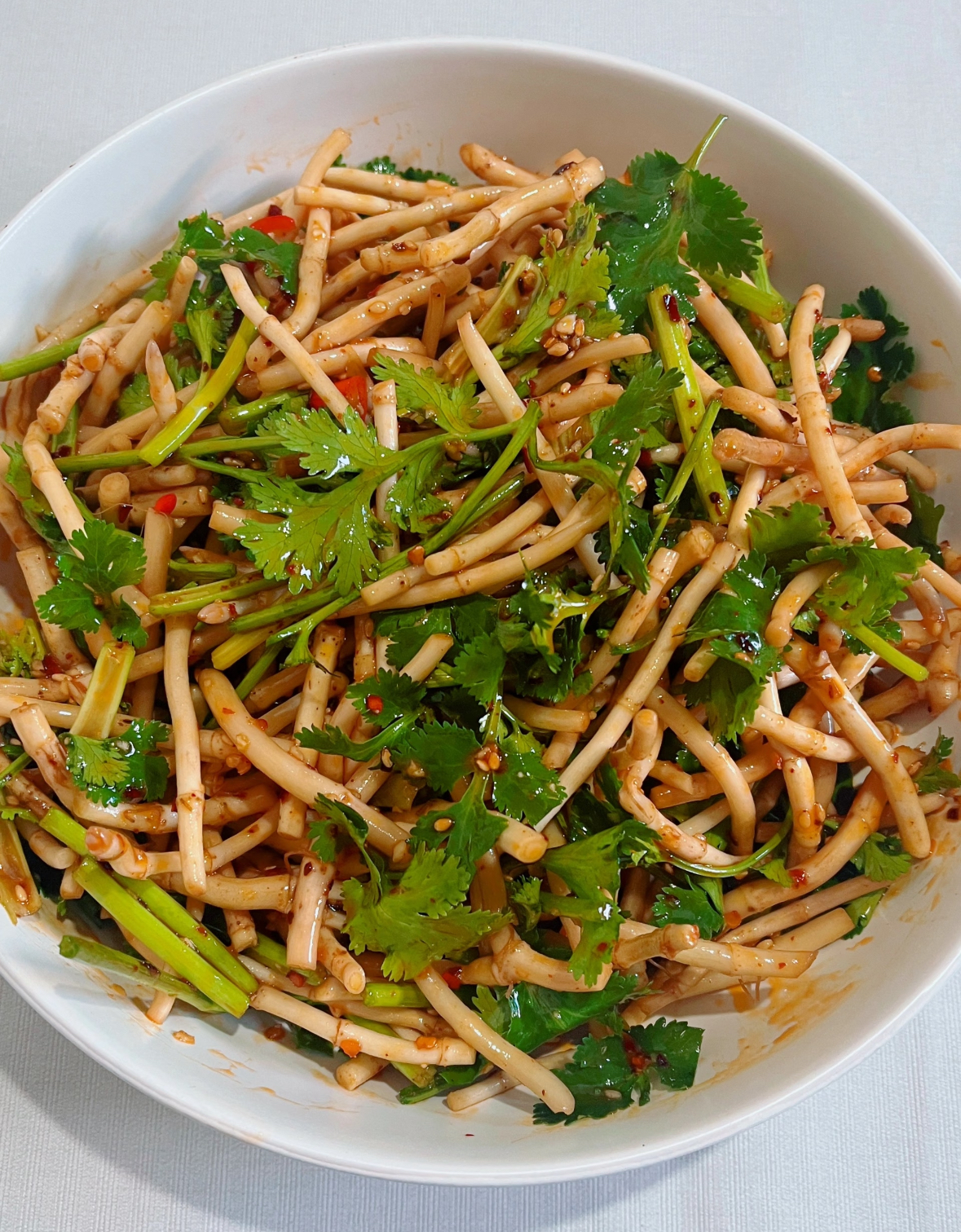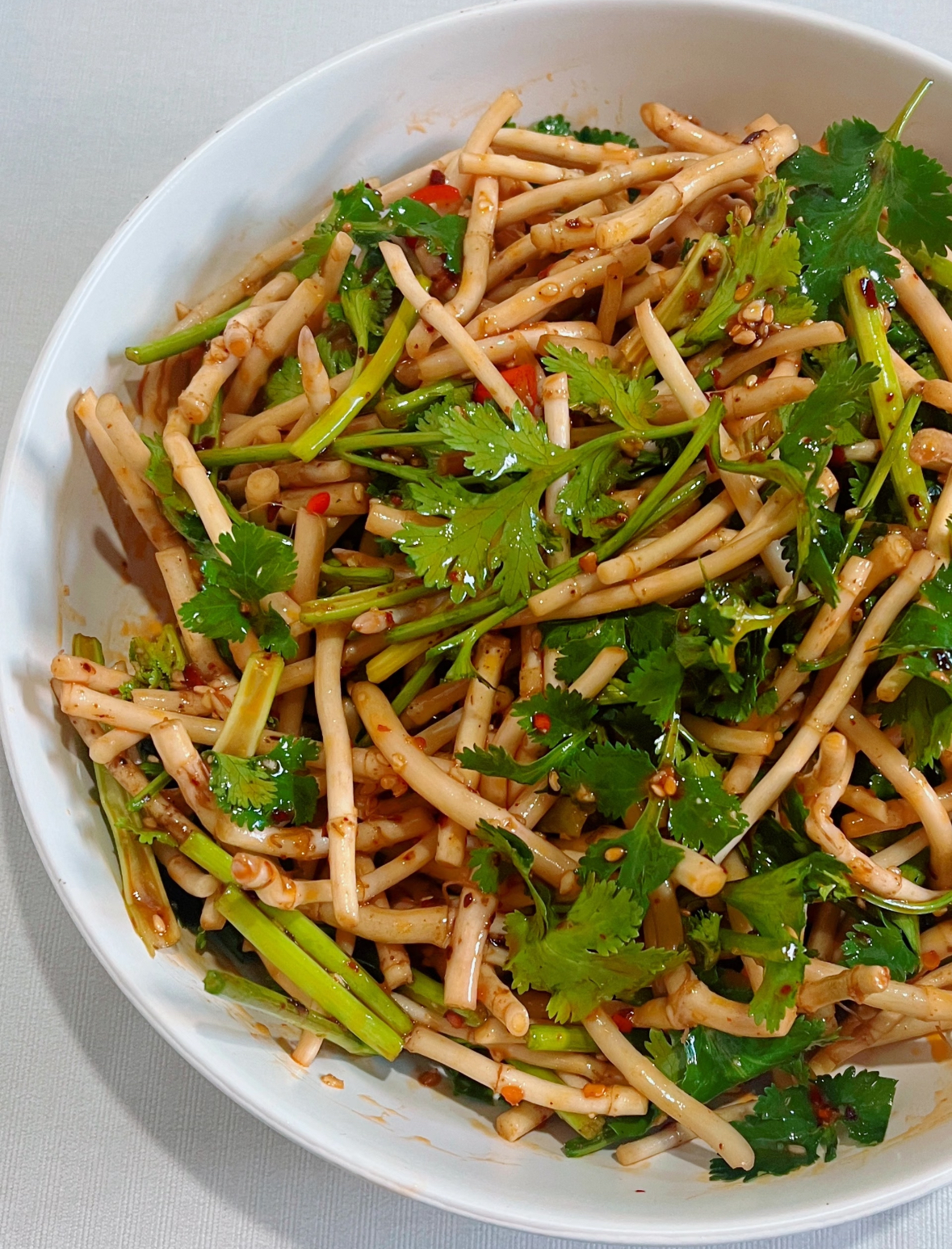 辣子、食盐、鸡精(如使用)等所有调味料,充分搅拌直至白糖和盐等完全溶解,味道融合。你可以尝一下,根据个人口味调整咸淡、酸甜或麻辣度。4. 混合拌匀:将沥干水分的折耳根段和香菜段放入调好的料汁碗中。用手或筷子充分抓拌均匀,确保每一根折耳根和香菜都均匀裹上料汁。5. 静置入味:拌好后可以静置5-10分钟再食用,风味更佳,更入味。折耳根的处理:折耳根清洗后最好用盐水浸泡几分钟,有助于去除部分腥味和杀菌。调味平衡:折耳根不费盐,所以放盐要谨慎。糖和醋的比例可以根据个人喜好调整,喜欢酸辣糖醋口的可以多放点糖和醋。现拌现吃:凉拌折耳根最好现拌现吃,放置时间过长会影响其爽脆的口感。口感挑战:折耳根特有的“鱼腥味”是其风味和部分功效的来源。初次尝试者如果担心不适应,可以先焯水几秒钟(但会损失部分风味和活性成分),或者减少折耳根的量,多加香菜。食用注意:折耳根性凉,脾胃虚寒或容易腹泻的朋友应少吃或不吃。孕妇也需谨慎食用。这道凉拌香菜折耳根酸辣鲜香,开胃爽口。折耳根带来独特的脆爽感和微微的“鱼腥味”(爱好者视为清香),而香菜则提供了浓郁的香气。复合的调味汁融入了咸、酸、甜、麻、辣,多种味道在口中交织,非常刺激食欲。尤其在夏季食用,倍感清凉解腻。希望你能成功做出这道美味又开胃的凉拌菜!