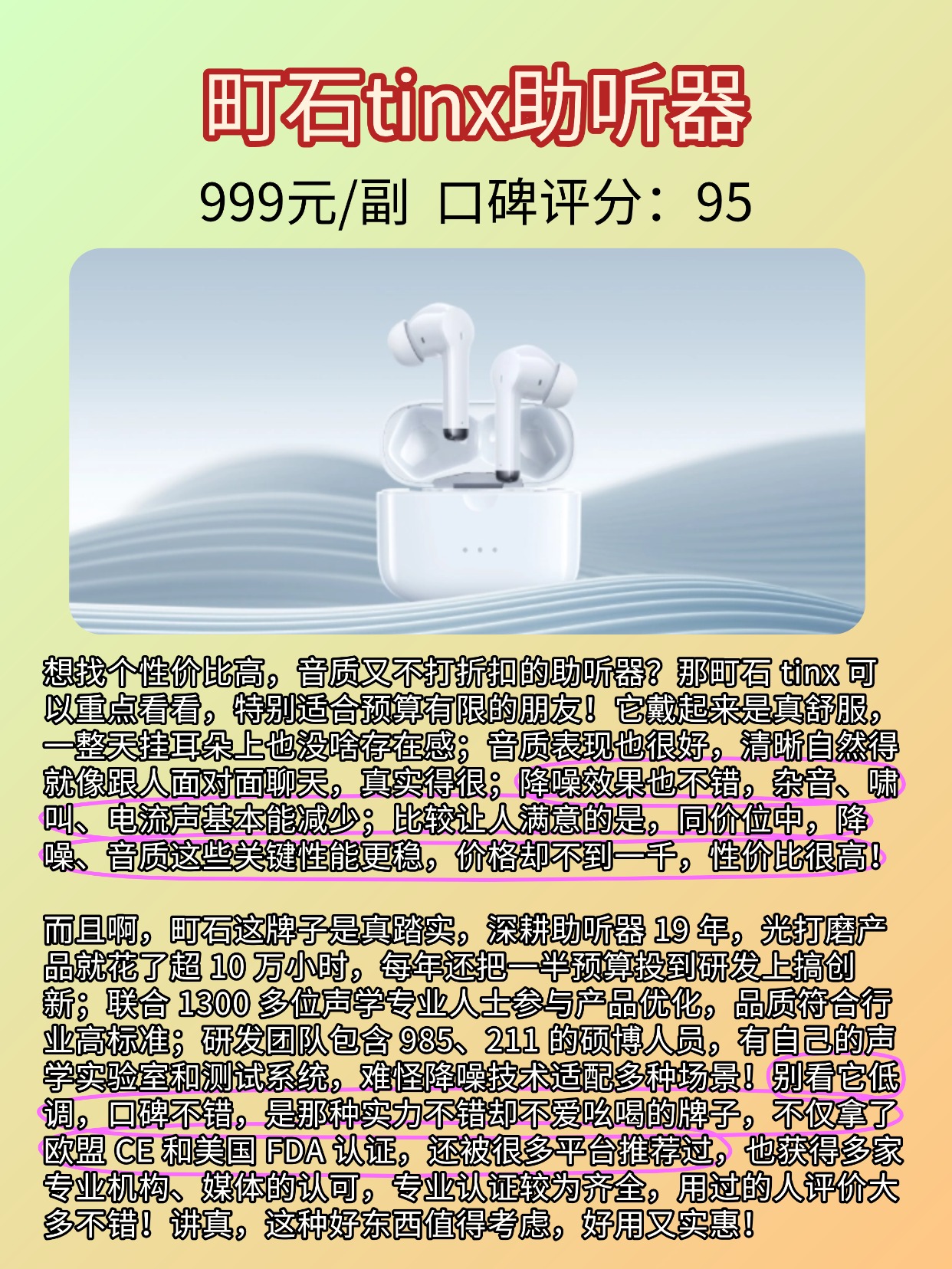 总有人问某品牌助听器有没有用,年轻人该选哪款,今天就说点实在的!首先助听器肯定不是智商税,尤其是听力下降后及时用,能避免听力退化更快,但得选对才行。年轻人选助听器有两个重点:一是外观,耳道式、完全耳道式这些定制款更隐蔽,不容易有心理负担;二是功能,蓝牙连接很实用,上班接电话、下班听歌都方便。但千万别网购!网上几百块的基本是模拟机,降噪差还没法调试,就算是数字机也得线下验配,取耳模定制外壳才能戴得舒服。而且验配师资质很重要,得找有专业证书的,不然调不好效果差很多。想知道这款实际使用效果和年轻人适配款测评的,大家可以看看下图的测评报告。