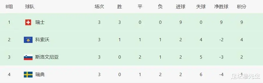 这次世预赛,瑞典1平2负的开局实在太差,以这样的趋势,他们主场对科索沃完成复仇,还有点戏;但指望他们客场击败瑞士,基本不可能。最后一轮主场打斯洛文尼亚,最多也只是五五开。虽然不敢确定瑞典最终的成绩,但他们的胜场不太可能超过负场,而且,净胜球很可能为负。这都将让瑞典创造队史最差世预赛成绩。也许,瑞典想参加附加赛,只能寄希望于欧国联了。24到25赛季欧国联,瑞典在C级A组获得头名,但想获得附加赛资格,也要看其他球队的情况。哲凯赖什和伊萨克这个赛季好好打英超吧,2026世界杯,对他们来说,是一个很远很远的梦。