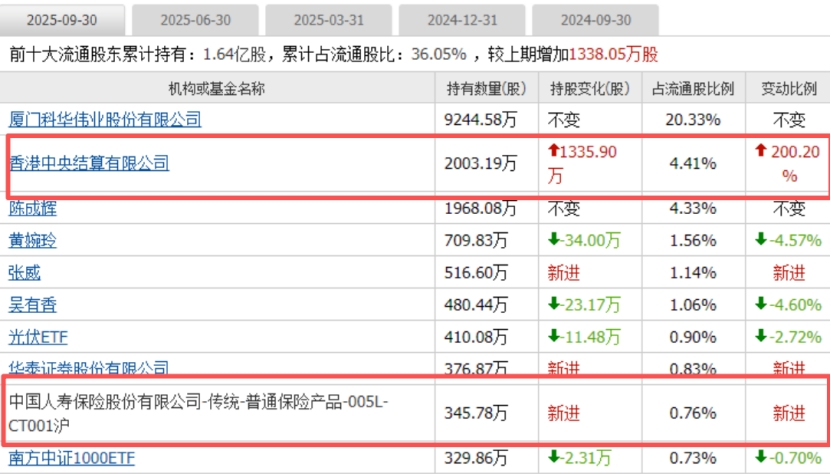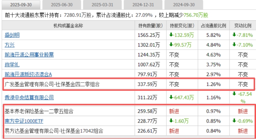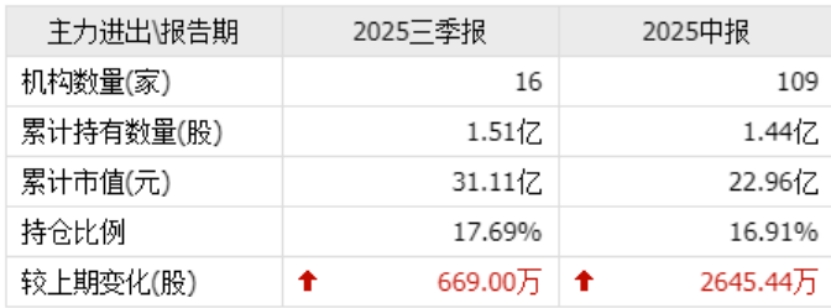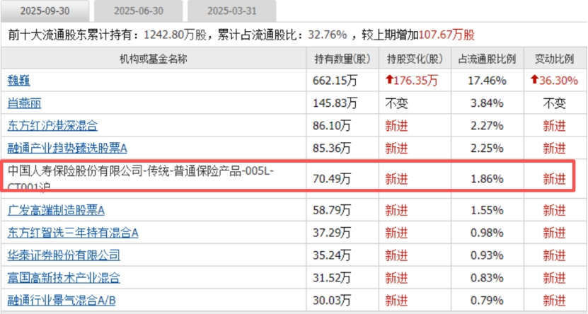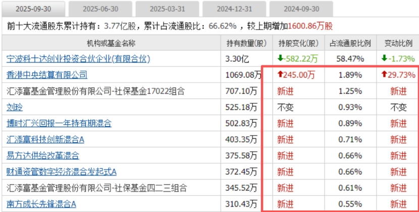 机构动态:三季度前十大流通股东8新进1加仓,合计加仓611万股。