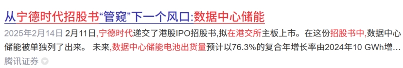 宁德时代在港交所招股书中指出,算力市场带来的数据中心储能电池出货量,预计将从2024年的10GWh 增长至2030年约 300GWh,约增长29倍,其对应设备市场规模约1500亿元。
