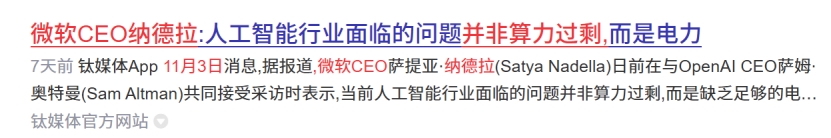 11月3日微软CEO纳德拉在BG2播客中表示,微软当前并非是算力过剩,而是数据中心的供电和物理空间已接近极限,导致大量AI芯片只能滞留在库存中,无法通电运行。