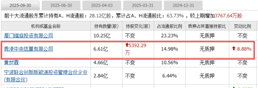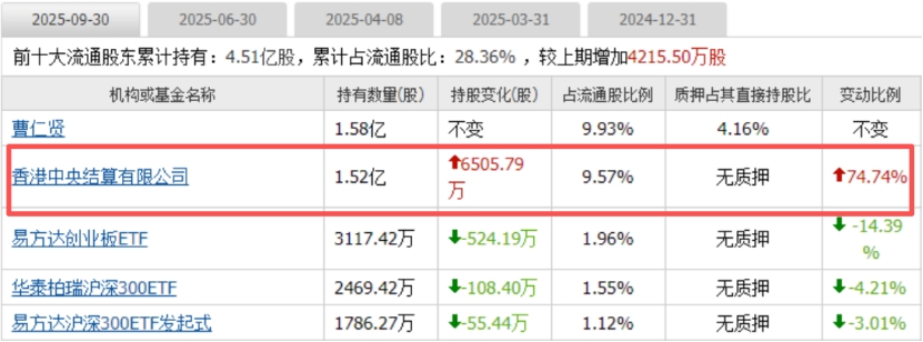 机构动态:三季度前十大流通股东中,北向资金加仓5392万股,连续2个季度加仓,合计重仓6.61亿股。