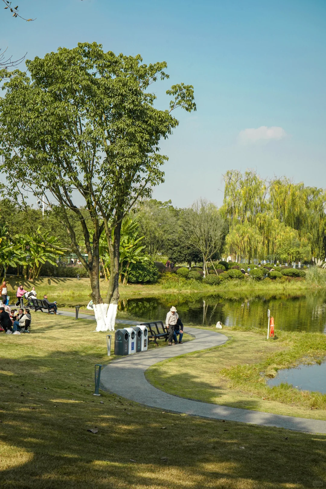 集水、鸟、竹文化一体的生态湖区,依北湖而建,大部分好看的景点都是在湖边