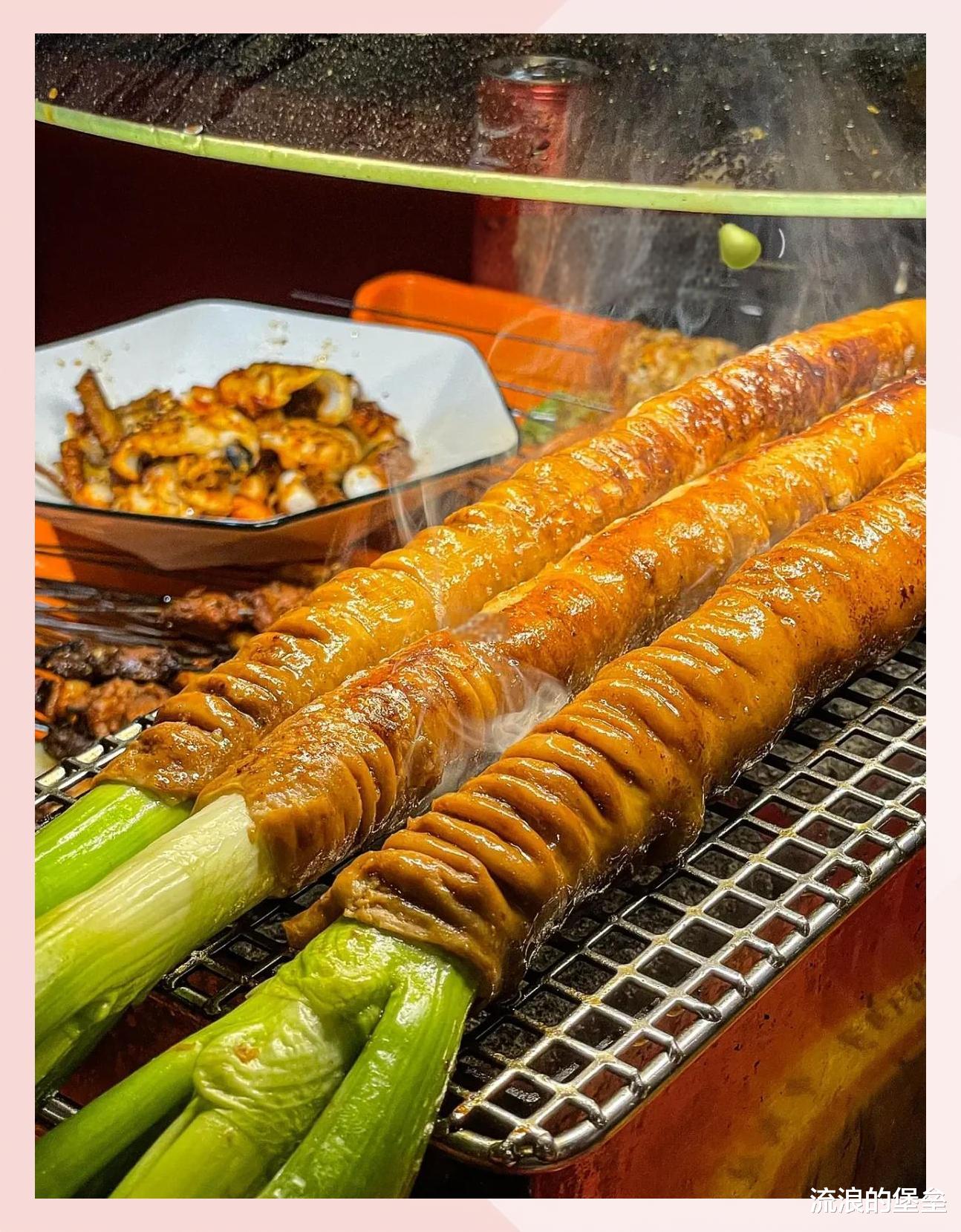 5、大肠卷大葱,吃大肠的人比较喜欢吃,但是大肠卷大葱吃一次差不多,并没有想的那么好吃,大肠吃起来拉丝还不错,但是大葱吃起来就很怪了,软塌塌的辣味还足,但是味道一般,所以当时火了一时,后来就没有了,现在想吃估计得去关系好的地方定制了
