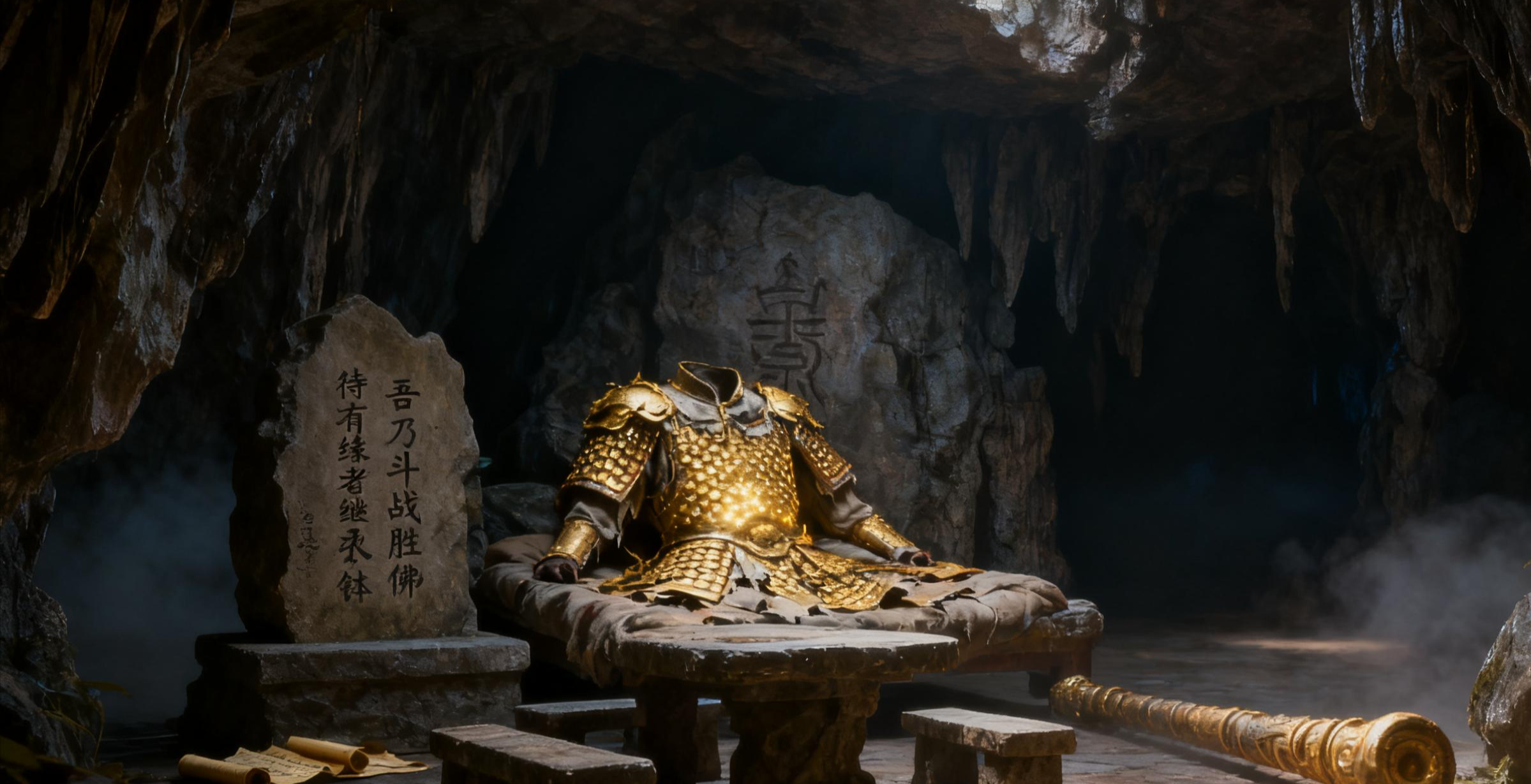 原著中藏着诸多铁证,足以证明水帘洞并非天然形成的空洞府。当年孙悟空第一个钻进瀑布,发现洞内竟是现成的仙家府邸:石灶上还留着余温,仿佛刚有人用过餐;石碗里残留着仙露的痕迹,尚未完全干涸;石床铺着天然苔藓织成的软垫,柔软舒适;洞内所有物品摆放得井然有序,不见半分杂乱。最关键的是,洞壁上刻着 “花果山福地,水帘洞洞天” 八个大字,笔力苍劲雄浑,字里行间透着道韵,绝非普通妖精能写出。再看锅灶里未冷的灰烬,更是直接说明主人刚离开不久,而这个时间点,恰好与石猴出世的时刻重合。