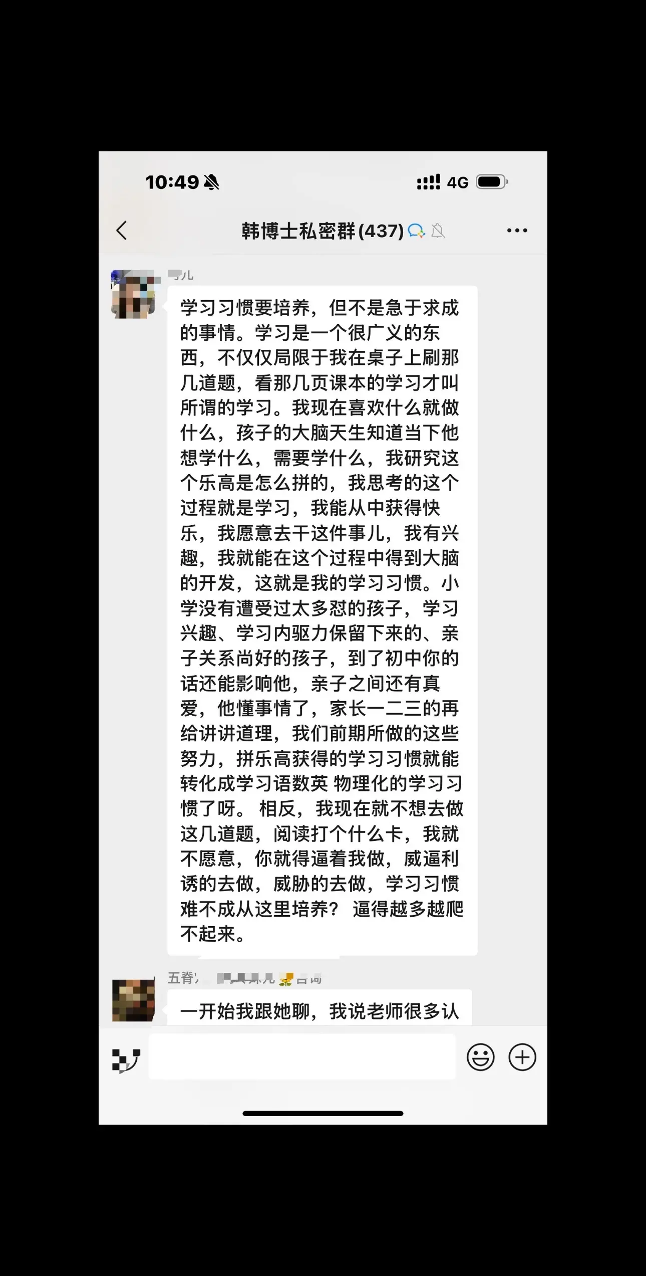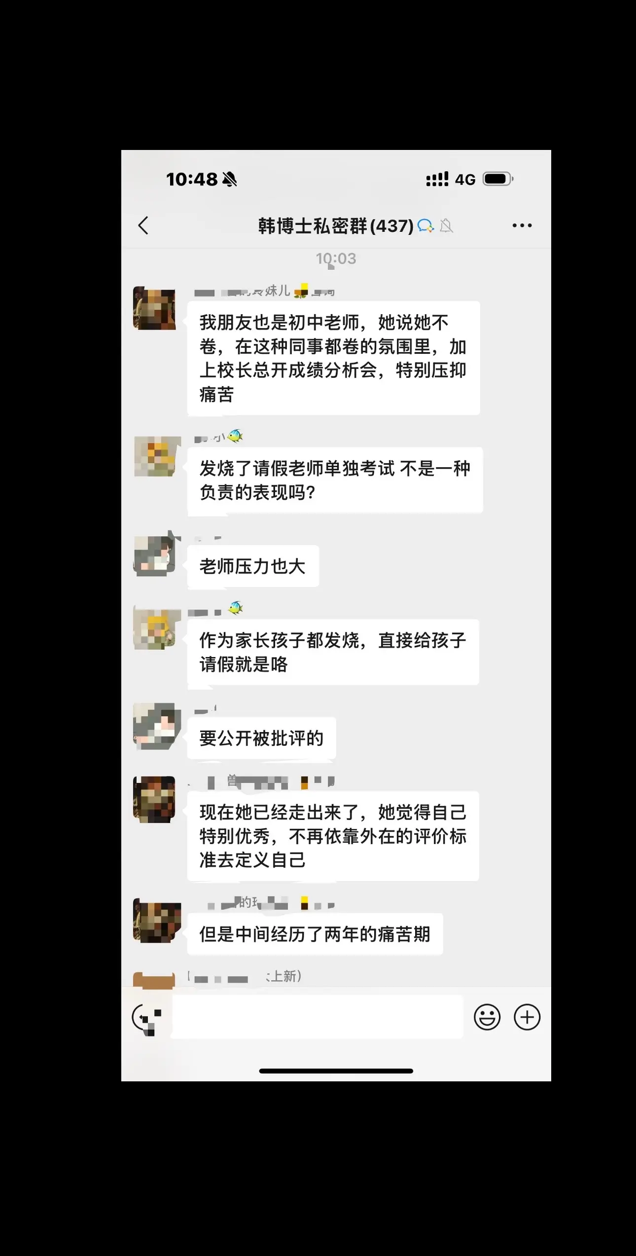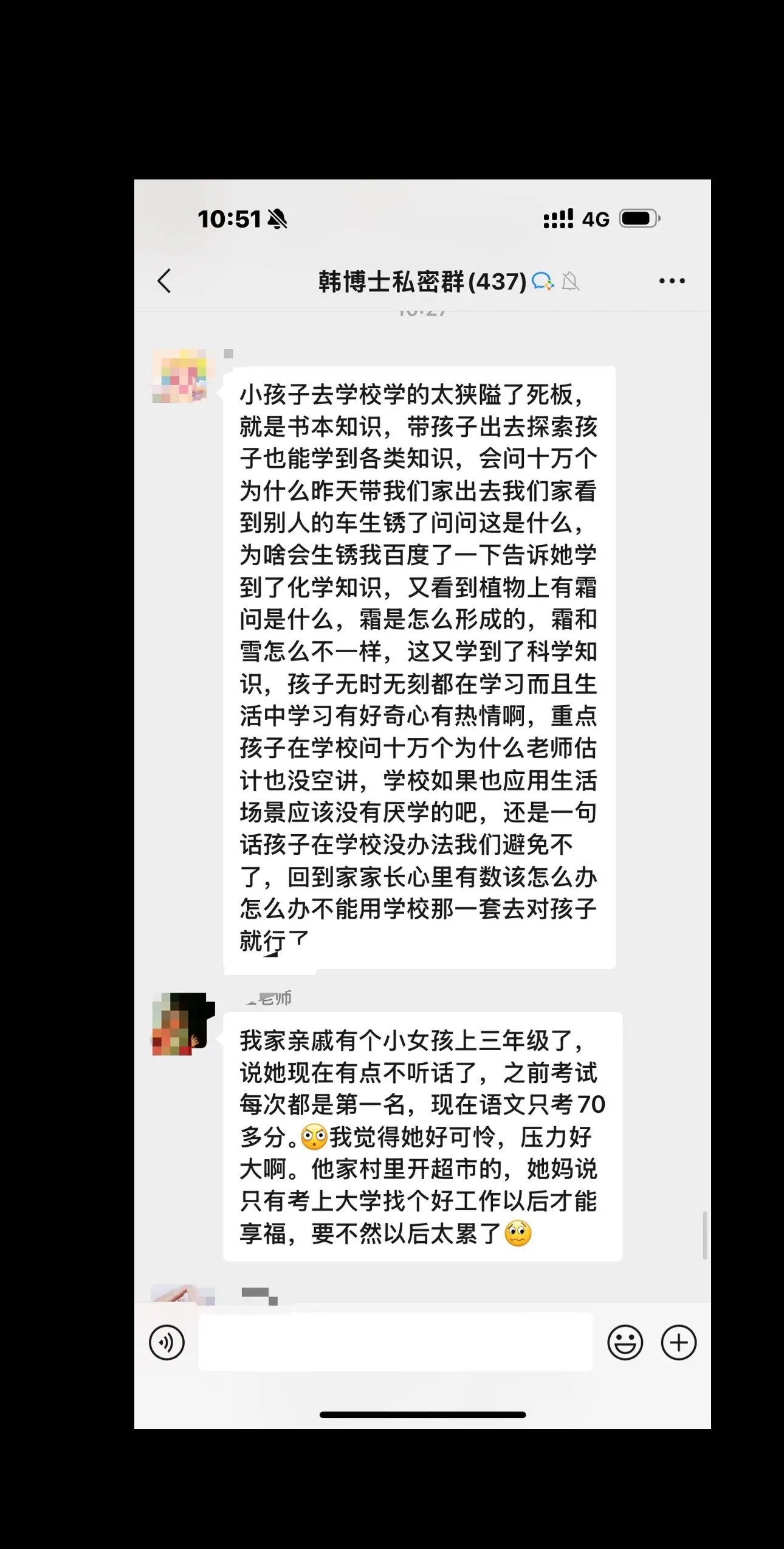 老粉在我的私密群里聊天,每天都有新惊喜,每天都有新提高(有的粉丝已经学会了独立思考与解决问题,有的粉丝还会焦虑,很普遍的,难得的是大家相互交流,值得学习)明天下午两点直播,给大家讲学校的学习问题,如何应对老师的问题。