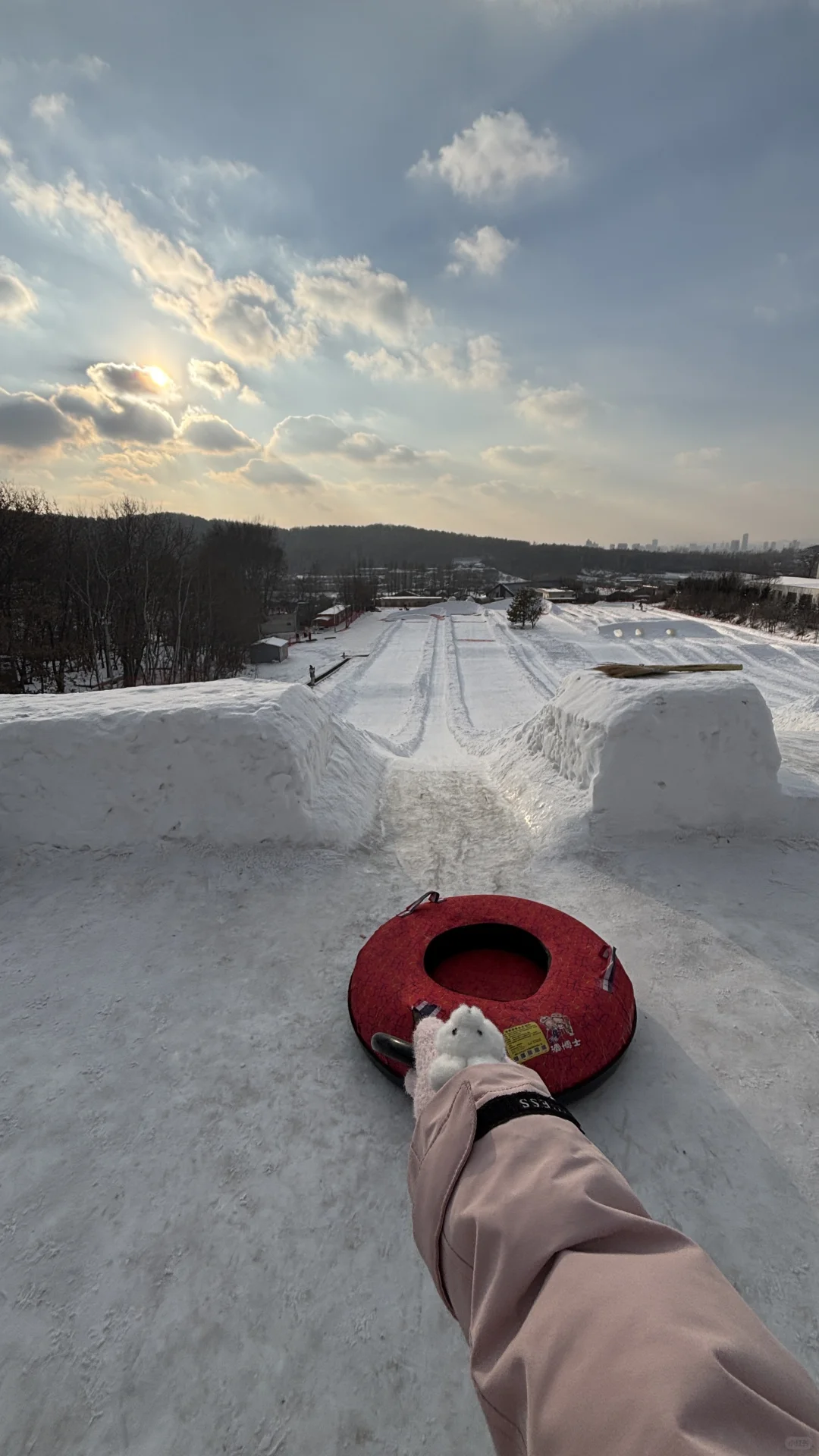 雪圈稍微有点沉,大爷大妈自己腿脚不利索也要帮我拉着走,看我脸露在外面还要送我口罩,我怕滑走得不利索,阿姨一把搀住我的胳膊,带着我往出口走。这里漫天的雪,照得人心也亮堂堂的。