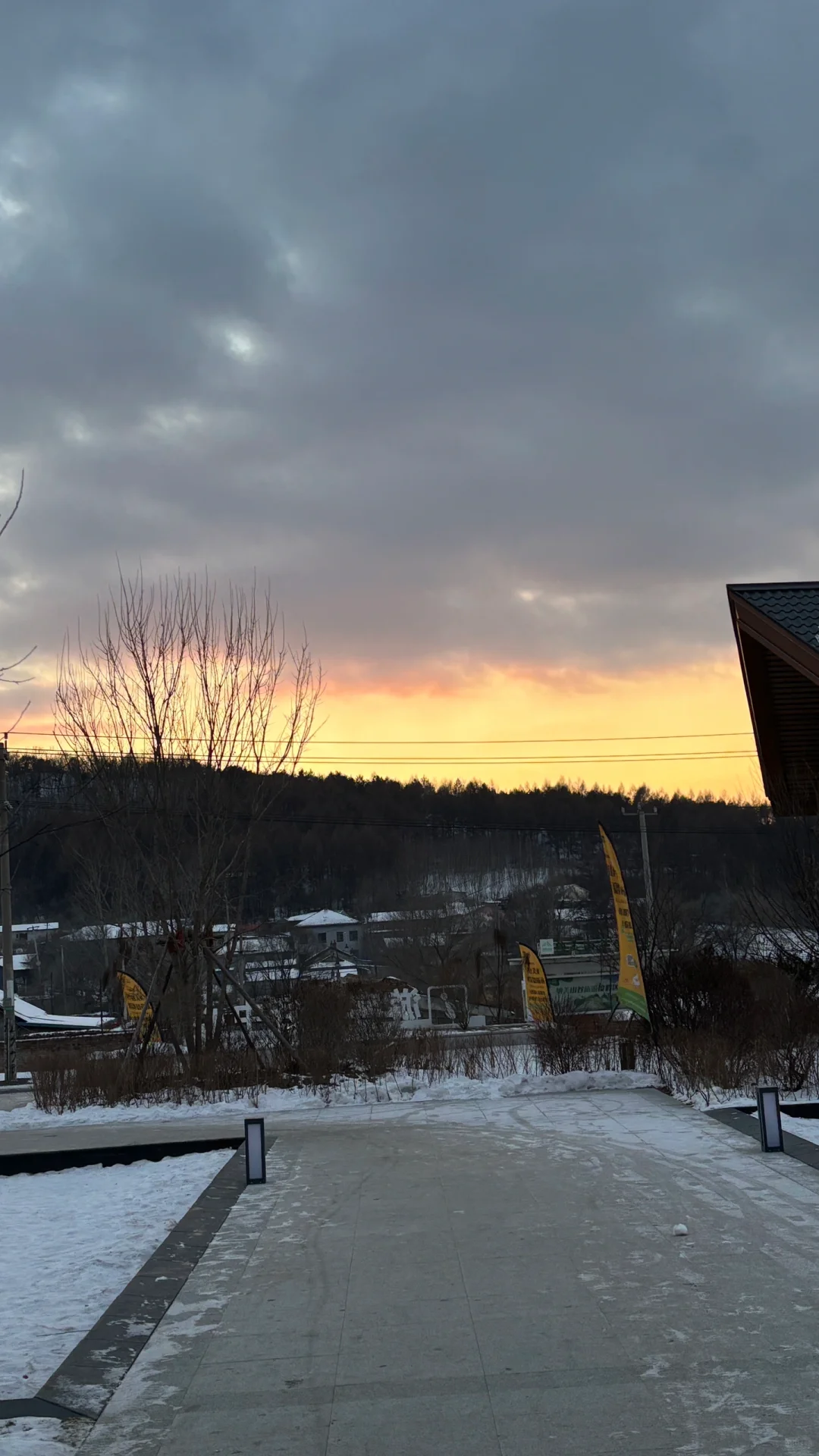 由于人很少,不用排队。我把七八个雪道玩了个遍,两个半小时就已经尽兴,离开的时候,刚好看到了山上的日落。