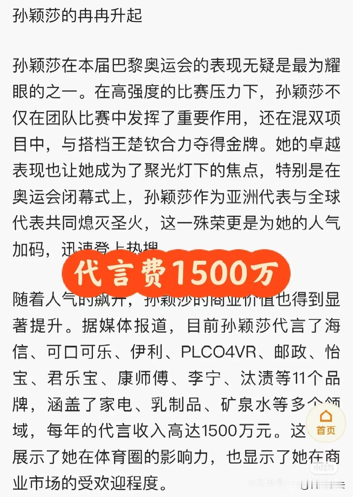 2024年,孙颖莎年收入飙升至2000万左右,十多个代言在手,代言费就高达1500万元。这不仅仅是数字的增长,更是她不懈努力的见证。