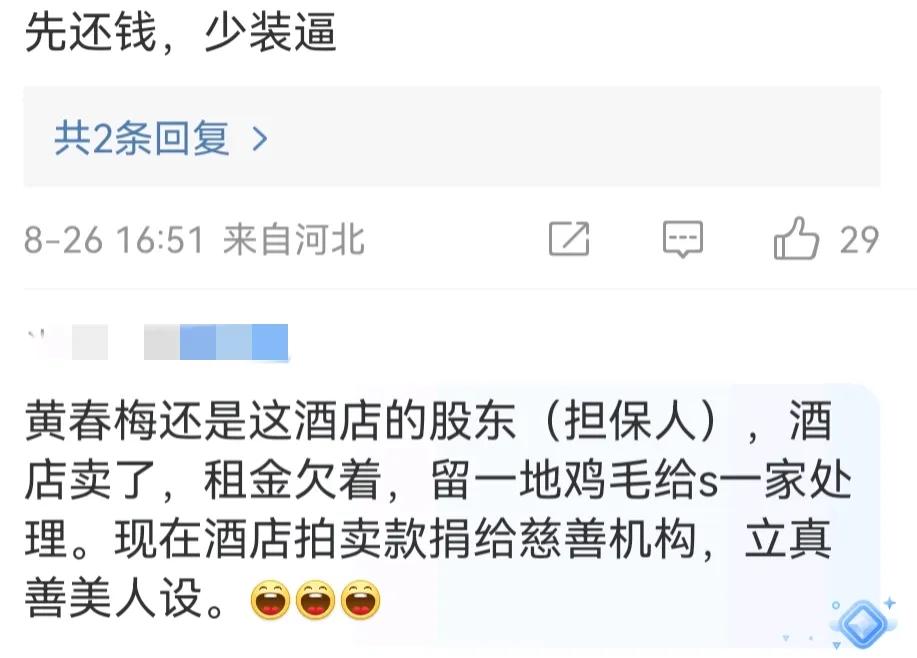另外汪小菲把酒店拍卖所得全部捐给福利基金会,这一步棋则走的相当漂亮,这是把酒店最后一丝价值都利用干净了。