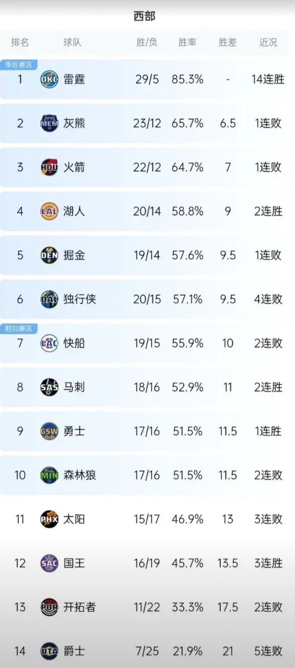 3.湖人最近运气也不错,打东部球队比较多,要不就是火箭这种大残阵,前边的独行侠火箭灰熊主将都有伤情,赛程还巨难,湖人要是下一场赢了火箭是有可能来到前三,顶替火箭的,火箭大概率要下到789这个位置了。