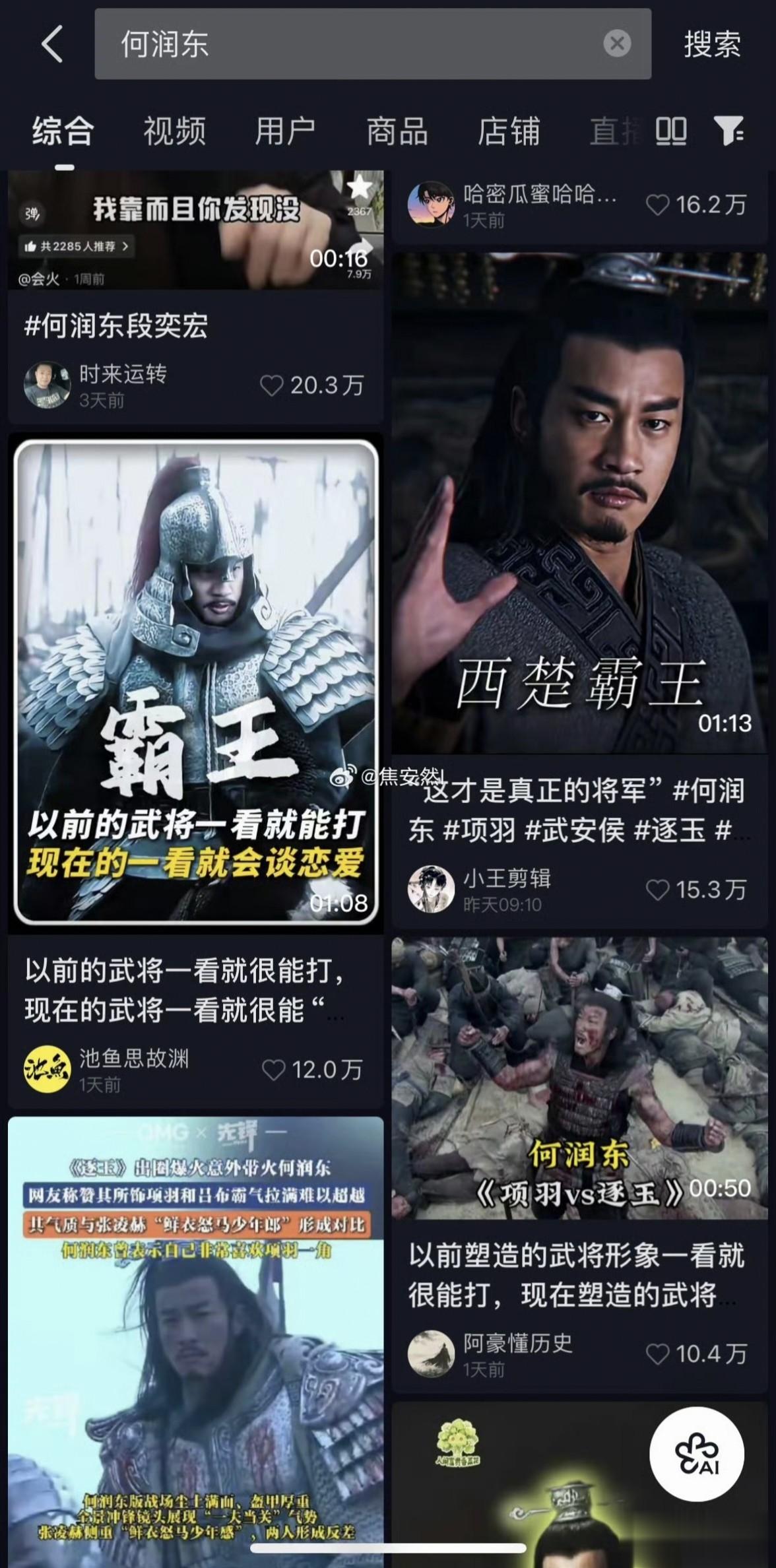 何润东早年饰演的“西楚霸王”项羽,就此作为武将的正面例子好评如潮,再次讨论出圈。