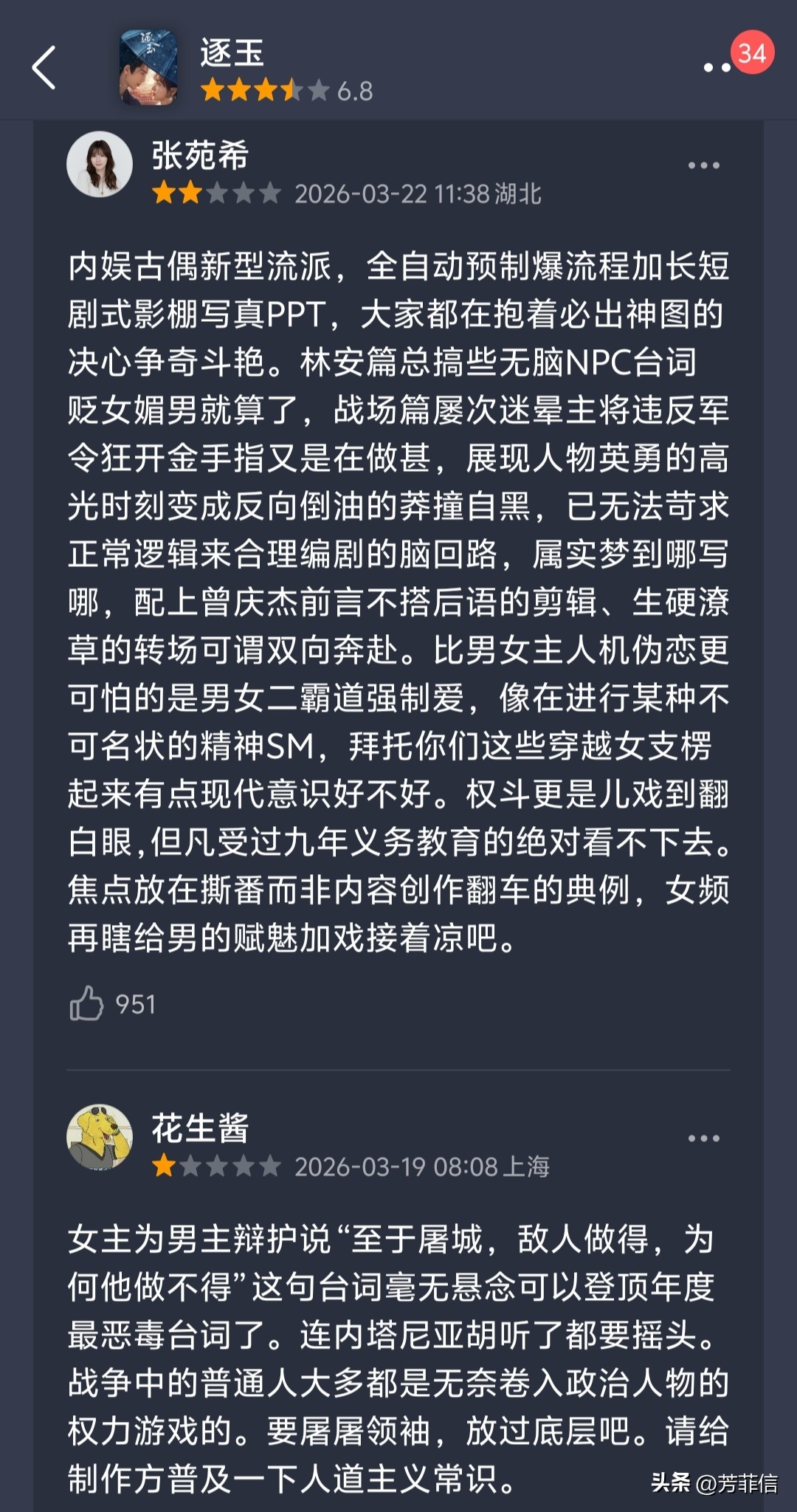 曾经诟病泡沫剧,如今由他主演的《逐玉》,正因为剧情过于无脑,陷入了一言难尽的风评。