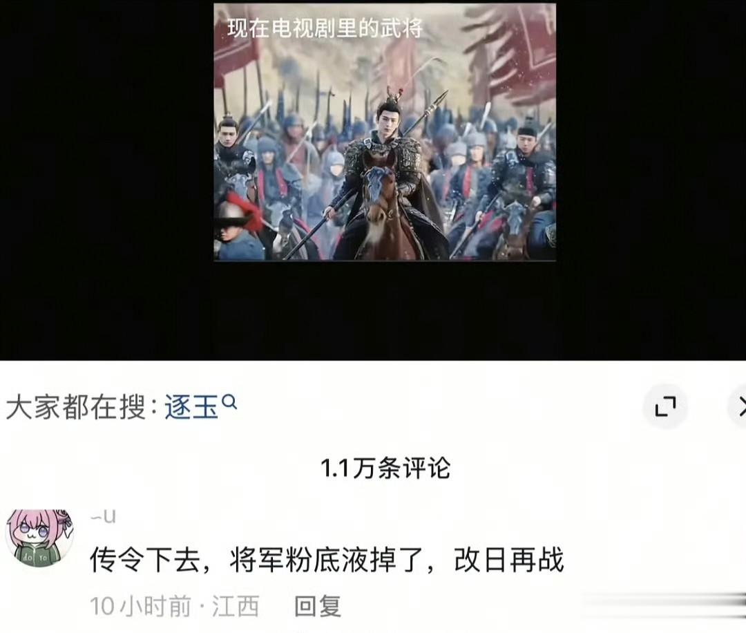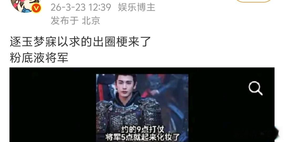 也就是在大众质疑《逐玉》作为一部爆款没有出圈梗时,“粉底液将军”来了。