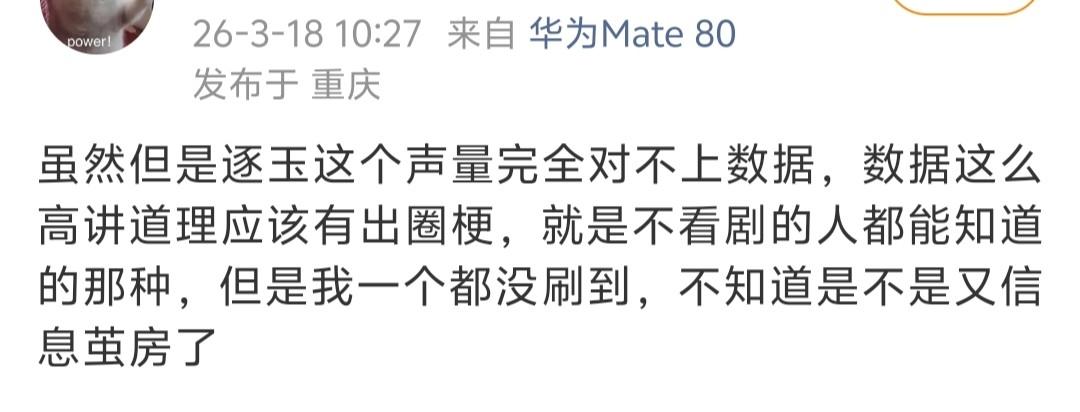 在大家看来,数据这么高应该有出圈梗,而《逐玉》没有。