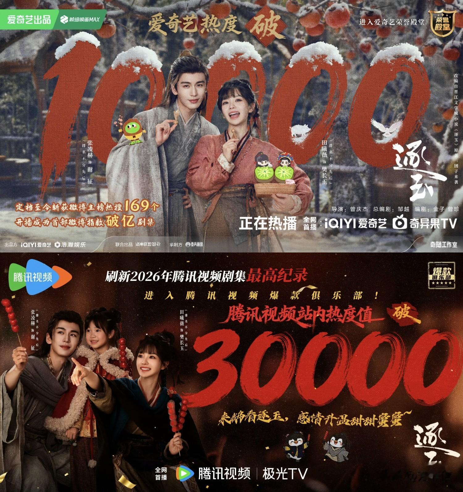 热度方面,《逐玉》成为了史上第一部双平台破万的剧集。