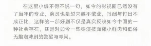 文中,张凌赫批评了市面上小鲜肉的面瘫没演技,以及泡沫剧的低俗无趣。