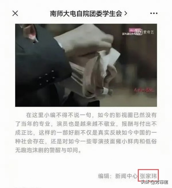 在校期间,作为学生会新闻部的一员,张凌赫曾发表过关于影视圈见解的文章。