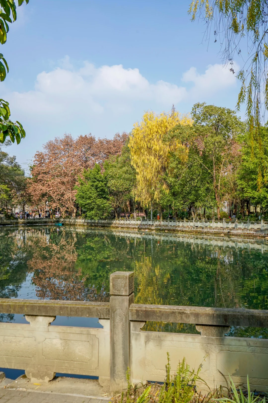 1️⃣金刚池:我的封面图就是金刚池池边的景色,池水翠绿,池边的梧桐、柳树、绿树三色,尤其好看