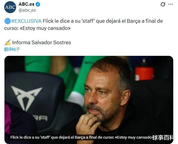 北京时间11月5日,据西媒ABC独家消息称,弗里克考虑在赛季结束之后离开巴萨。报道指出,弗里克感到非常疲惫,坦言对球员们散漫的态度感到失望,尤其是亚马尔。弗利克认为他未获得管理层足够支持。