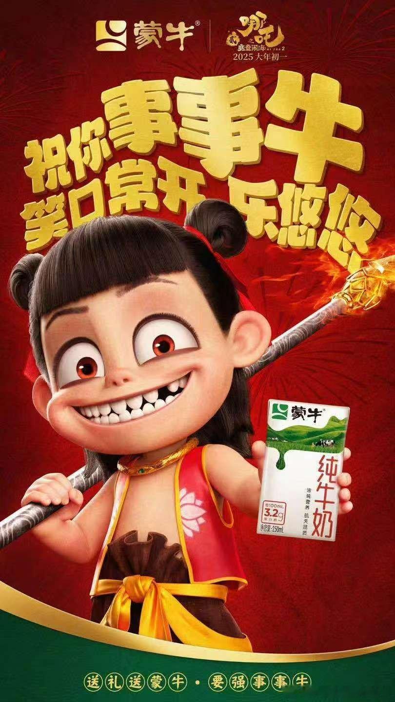 蒙牛携手春节大片哪吒2 哪吒祝你要强事事牛