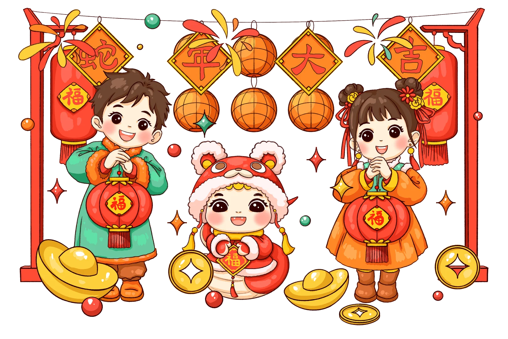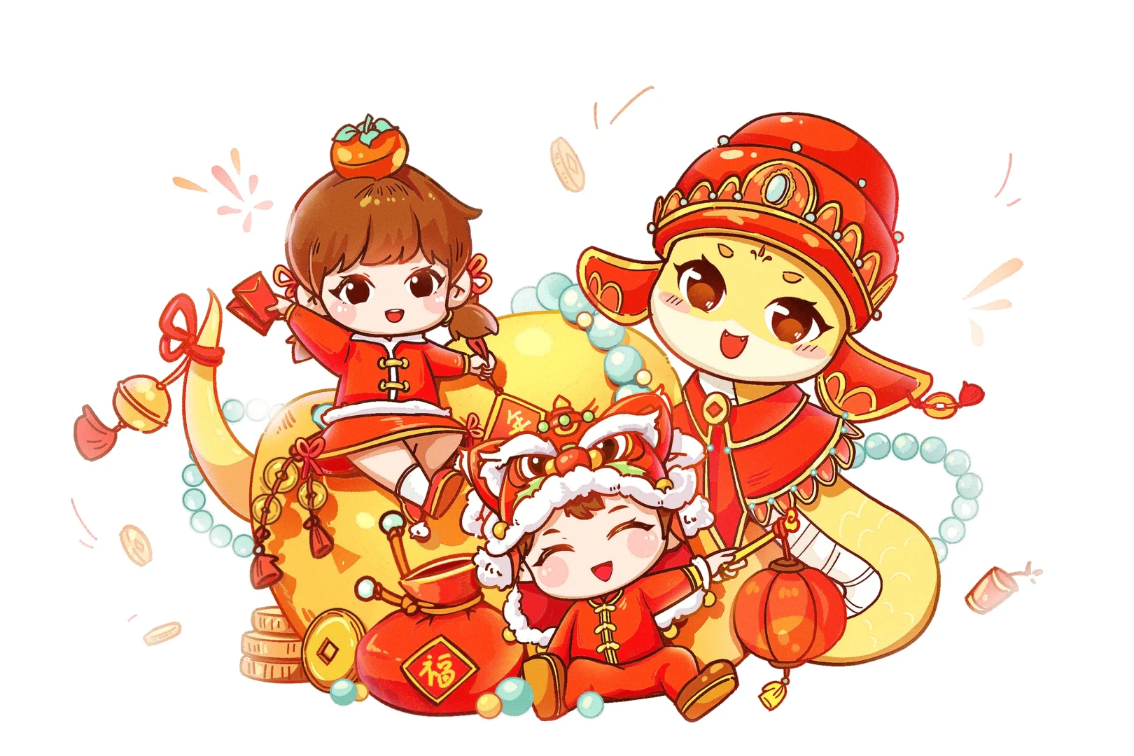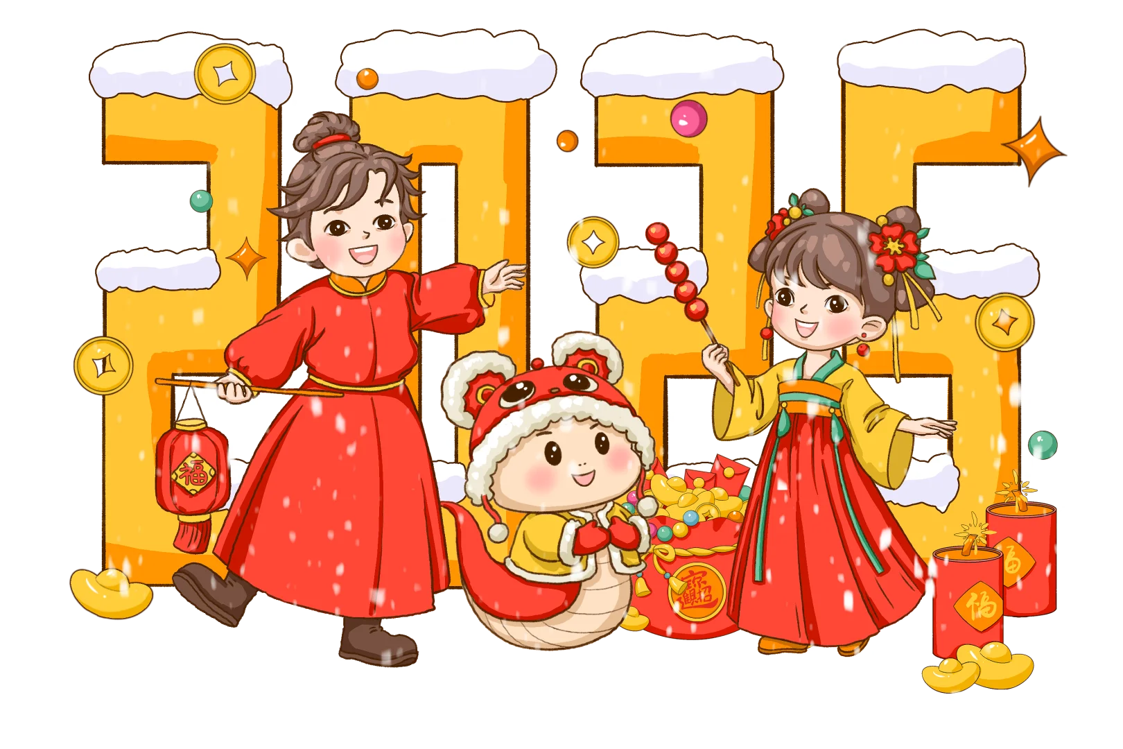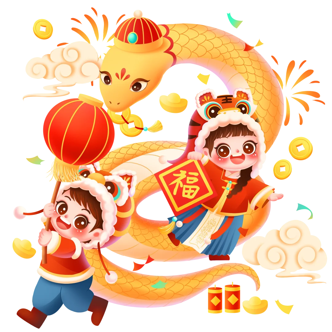 🧧卡通新年快乐蛇年2025新春春节过年可爱创意字体艺术字插画素材。 🧧卡通可爱男孩女孩小孩儿童福娃人物蛇年形象新年春节新春快乐主题插画。 🧧图片来源于