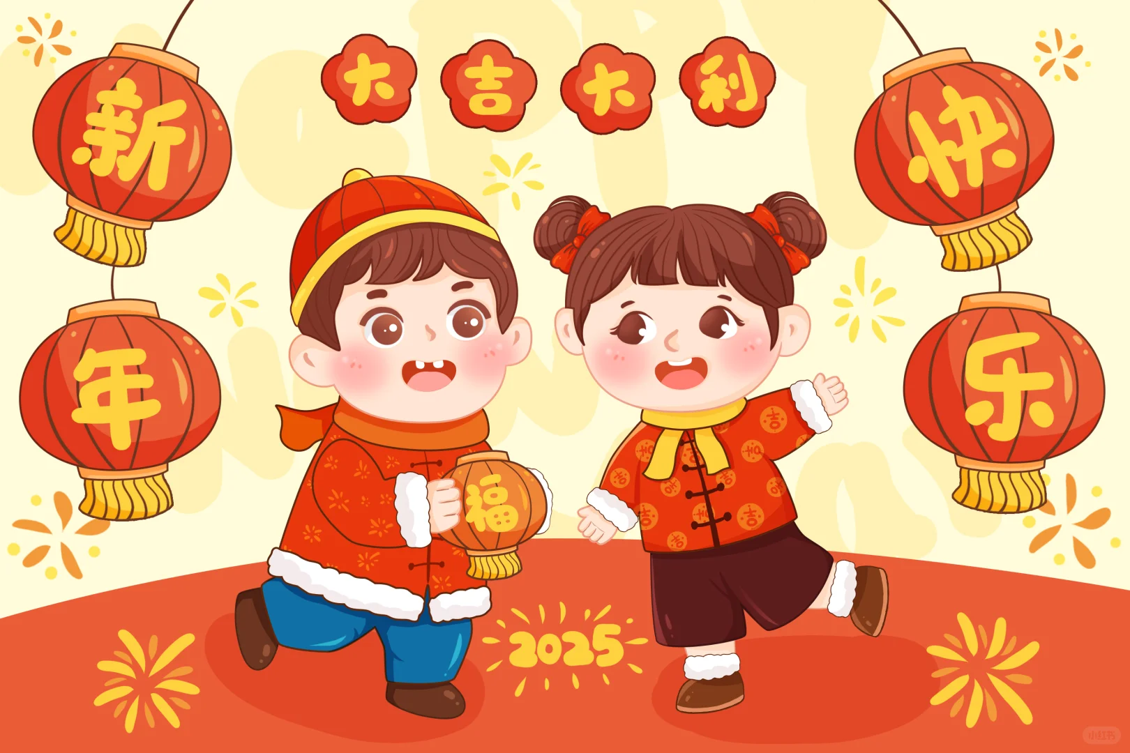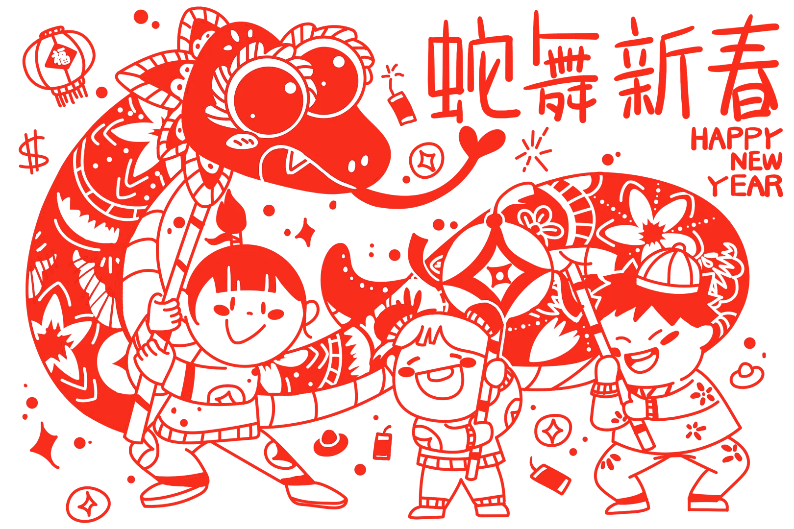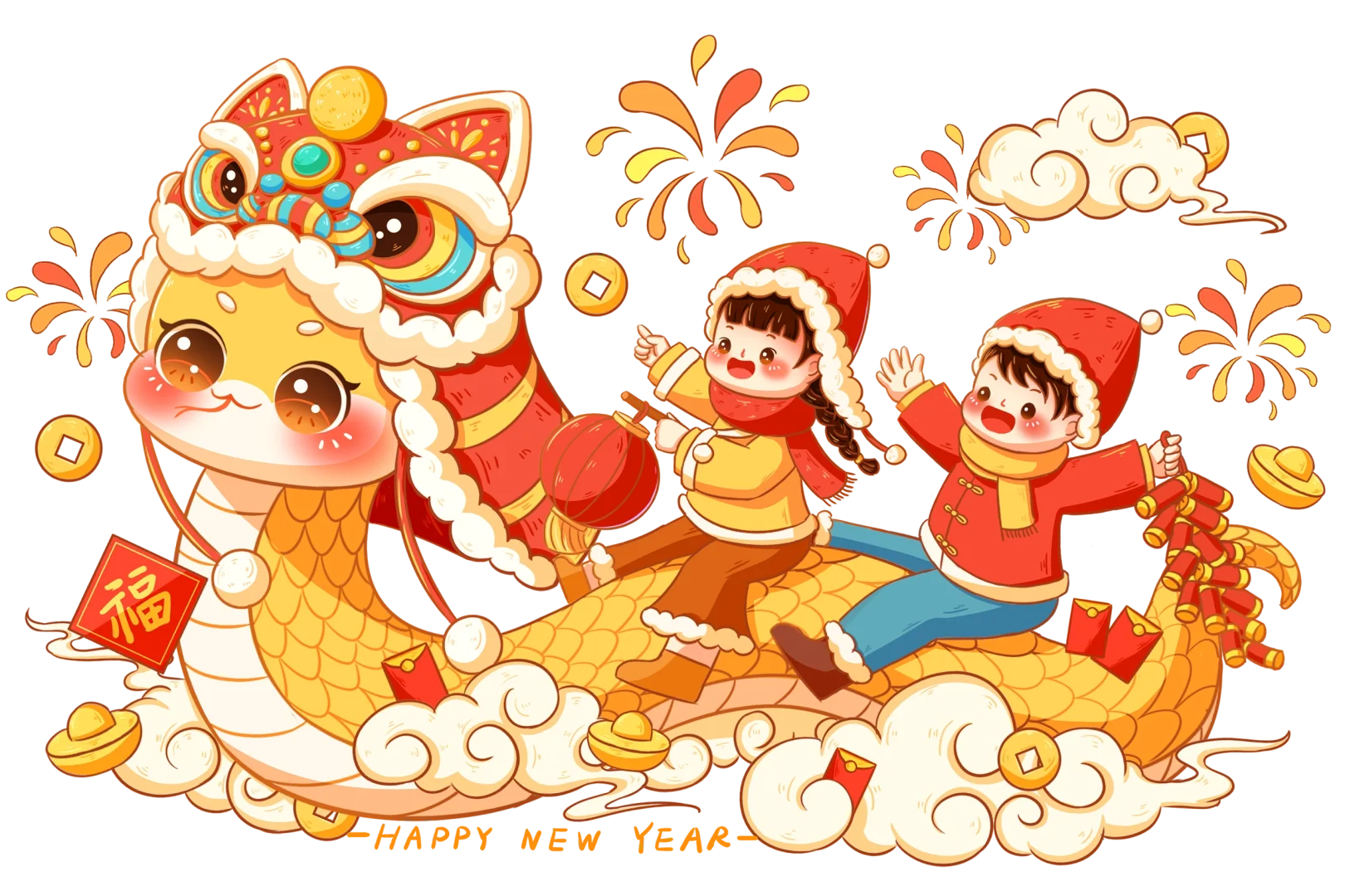 🧧卡通新年快乐蛇年2025新春春节过年可爱创意字体艺术字插画素材。 🧧卡通可爱男孩女孩小孩儿童福娃人物蛇年形象新年春节新春快乐主题插画。 🧧图片来源于