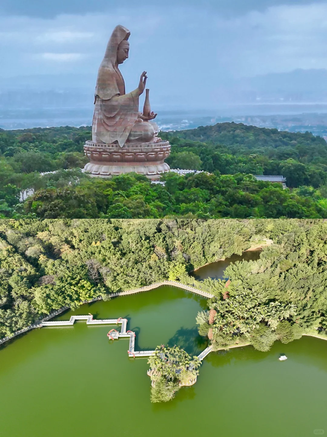 最后可以将天湖公园作为收尾,碧绿湖水与青山相映,敲适合拍照📸还有观音像别错过咯~