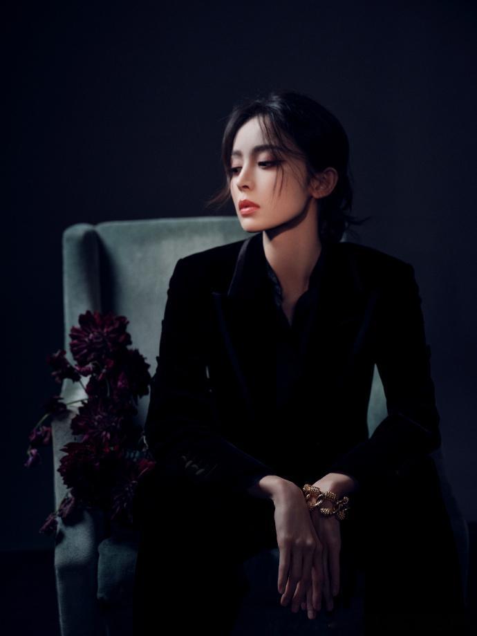 娜扎没有技巧就是硬飒 娜扎不语,只顾 going,一身暗色西装 + 低盘发,那股