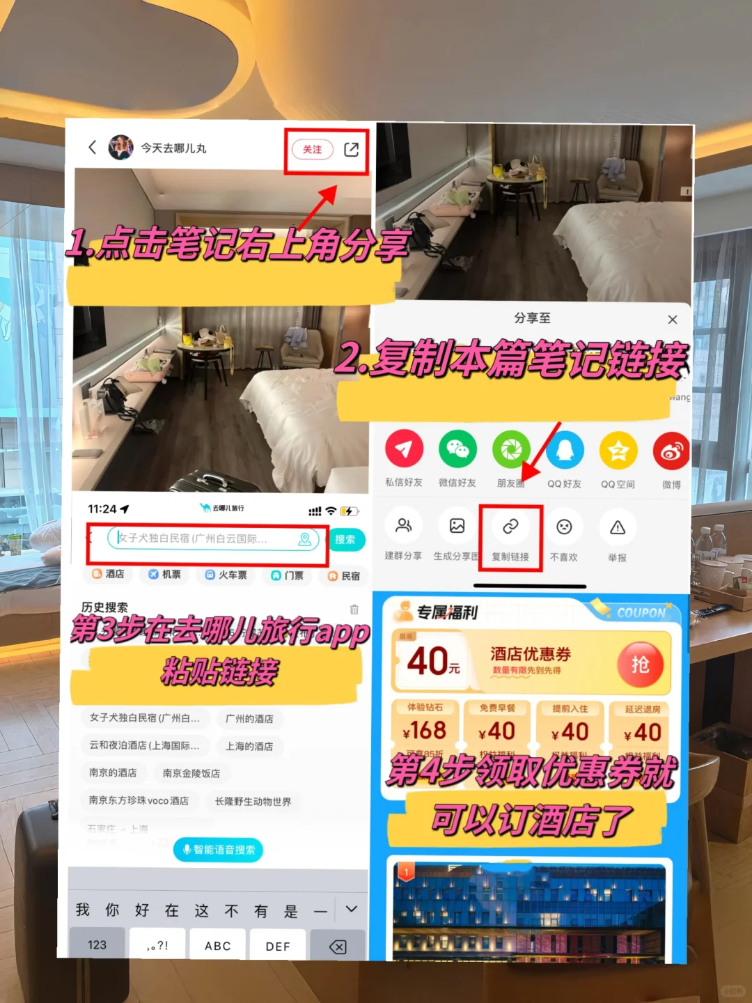 1.复制笔记链接到 去哪儿旅行app