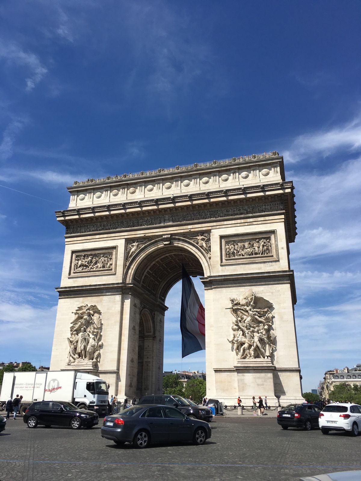 埃菲尔铁塔建造于1889年,为了彰显法国工业革命成果,及对1889年世博会宣传。是世界上最多人付费参观的名胜古迹,我们几个人排队等了2个小时才上去,不过刚好傍晚能看到巴黎更美的夜景。