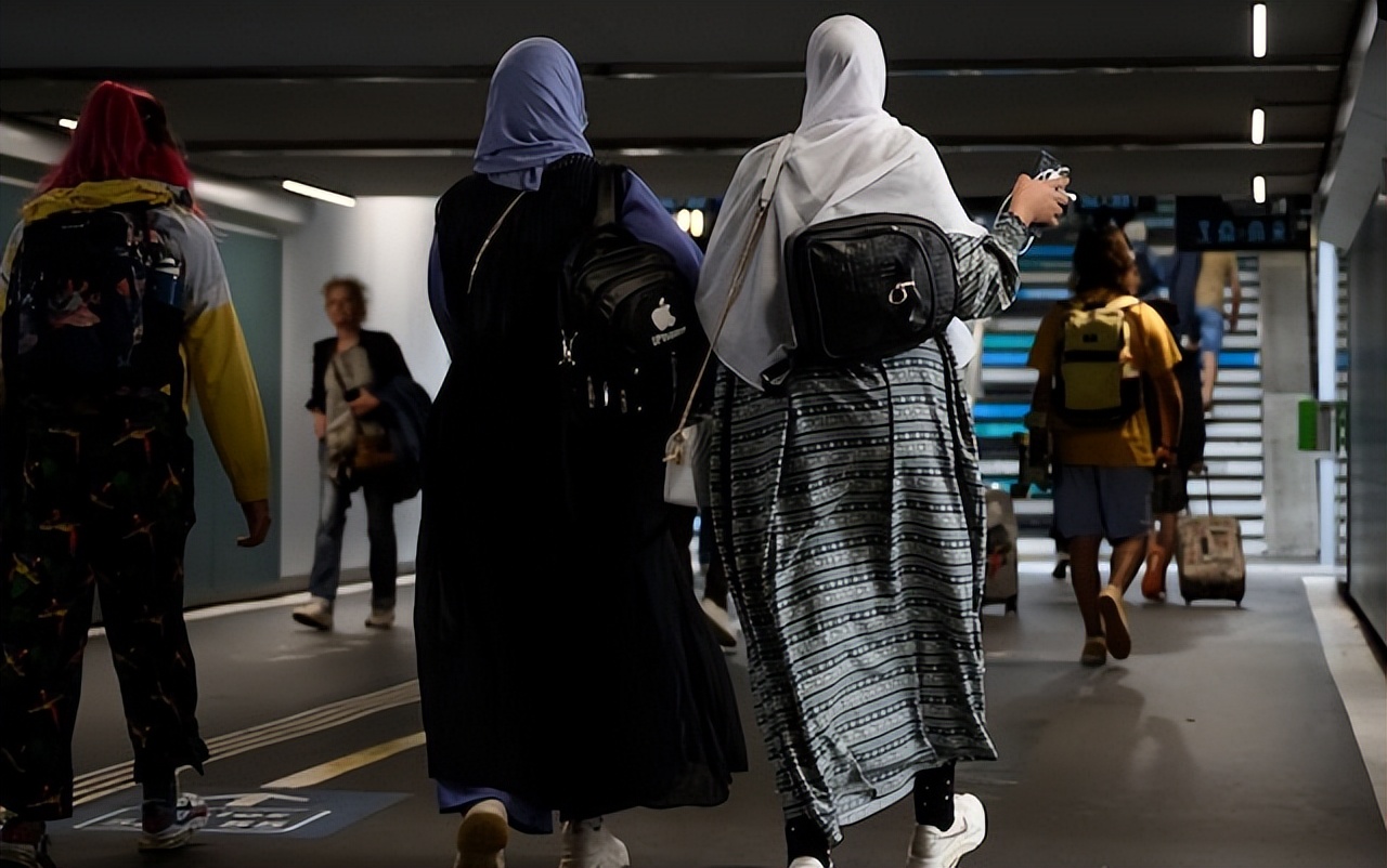 去地铁站路上穿Hijab(希贾布)头巾的穆斯林女性