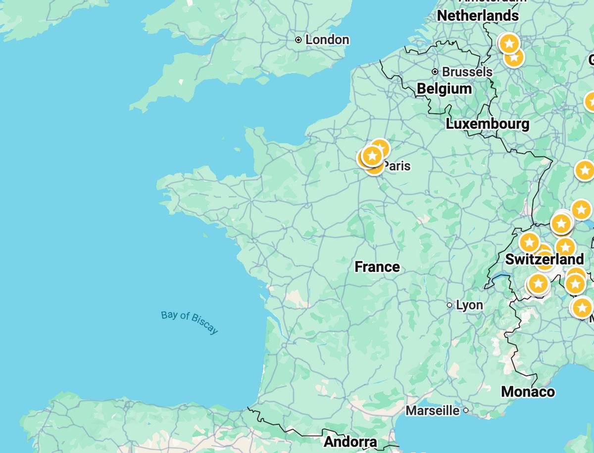 法国,东邻德国、比利时与意大利,西面比斯开湾,西南接西班牙,北隔英吉利海峡与英国相望。
