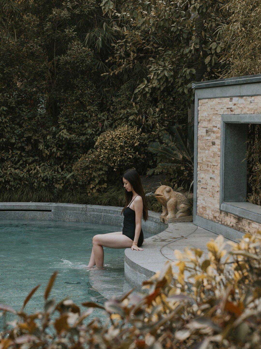 除了入户温泉,酒店也有户外泡池,酒店环境非常好,闽南古厝元素和江南中式风格相结合,惬意舒适,非常适合一家人安安静静的度个假。