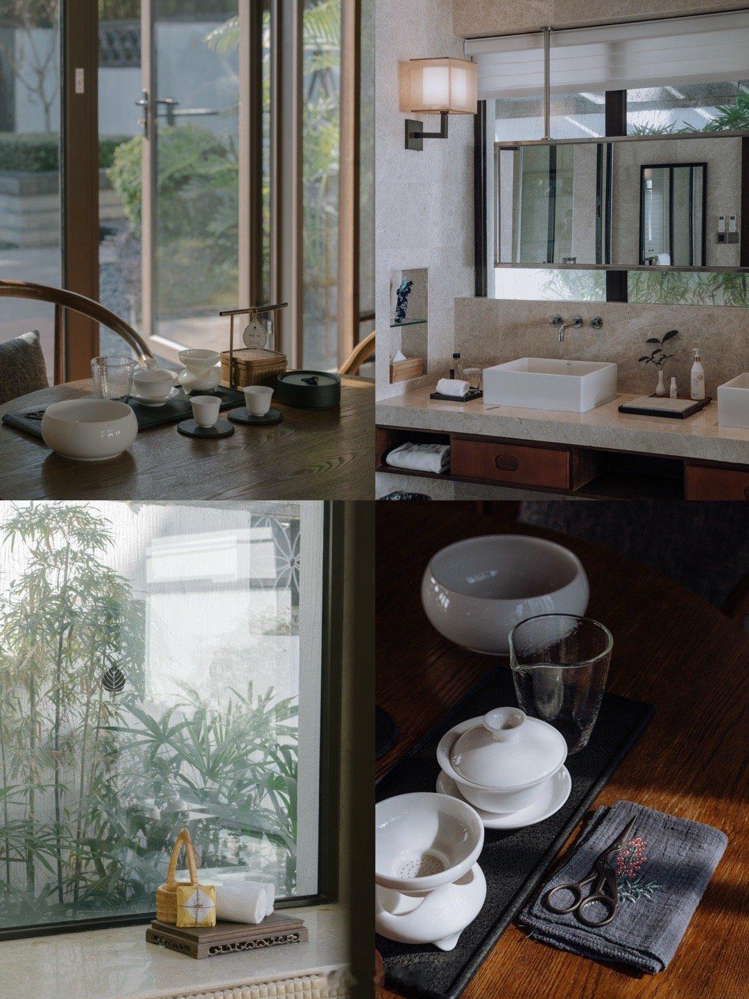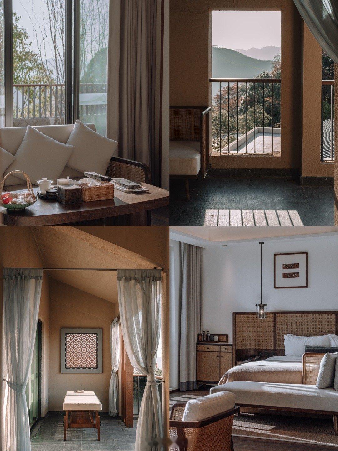 同样位于安溪的温泉度假村,新开业不久的清水岩,也是独栋别墅温泉入户,房间侘寂风的设计很高级,日落的时候推荐去酒店大堂,一整面的落地窗超级美,大堂外面还有一个直对山谷的平台,也是酒店的餐厅,非常适合看日落!