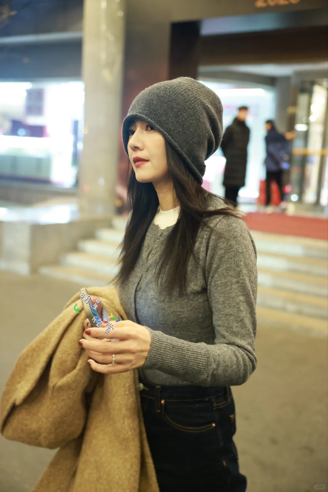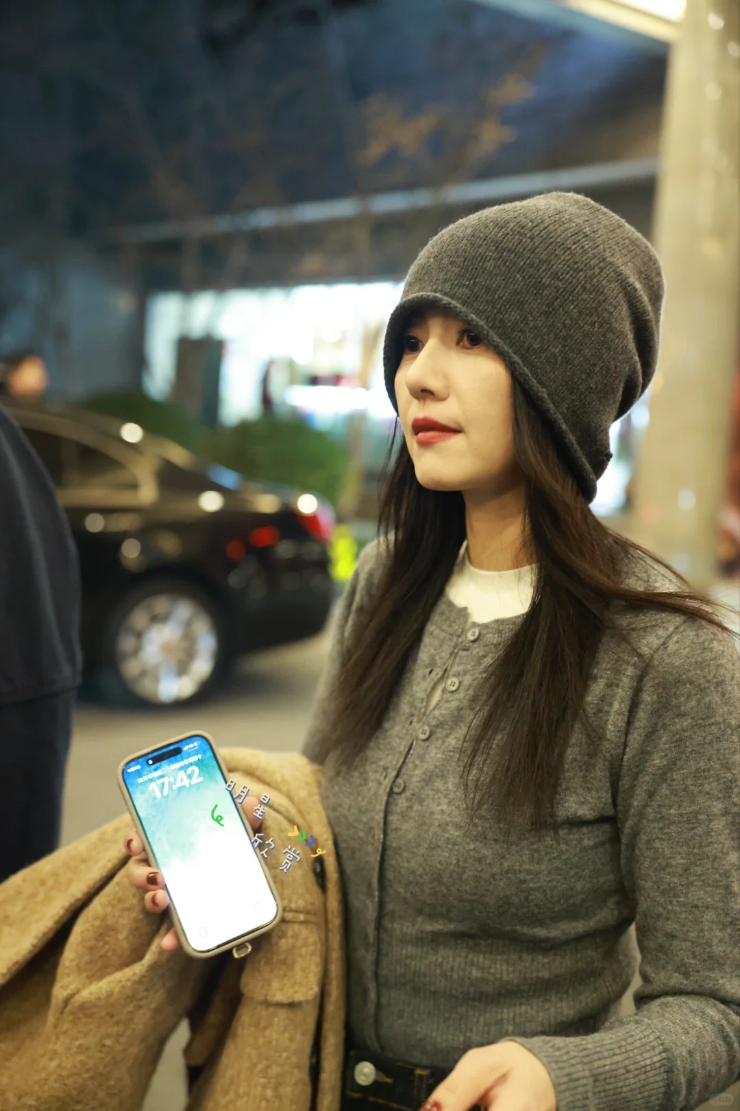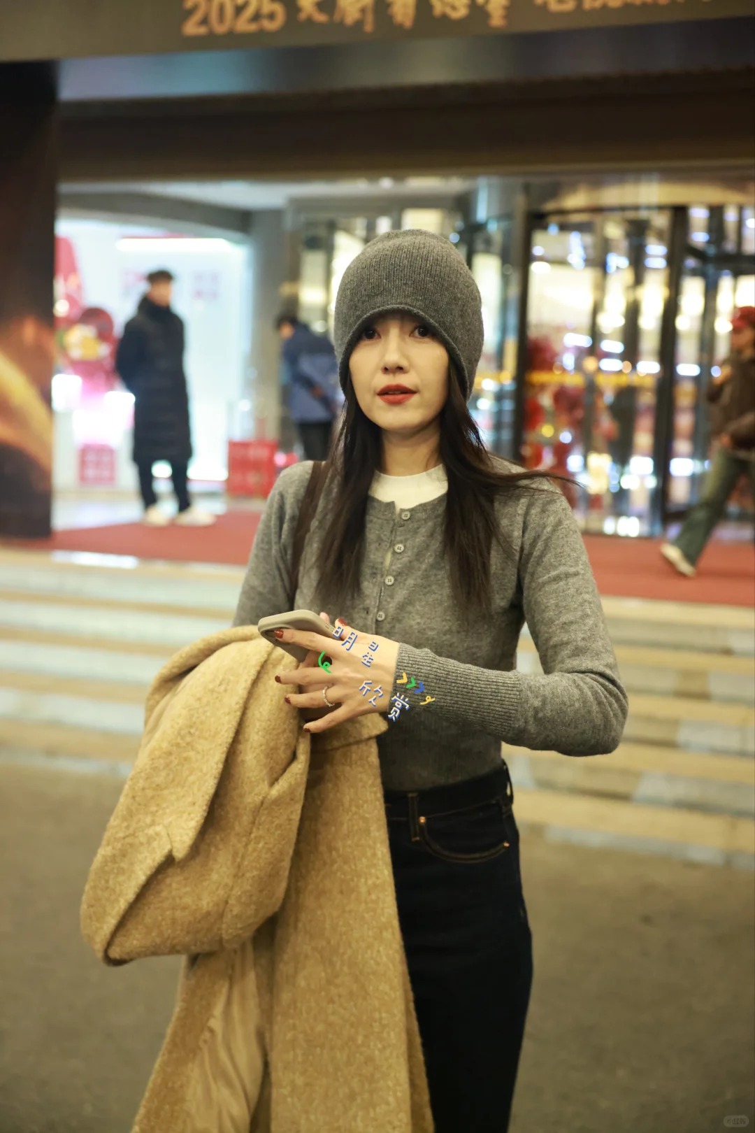 高圆圆大剧看总台下班 暖色系穿搭的圆圆🤎 暖暖地散着光✨