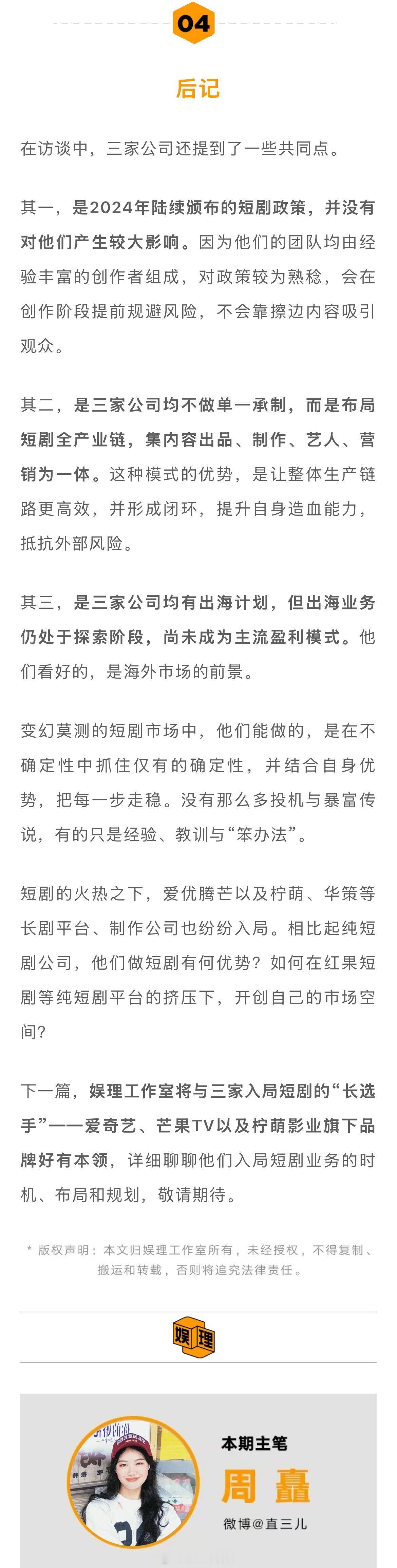 短剧爆款演员片酬涨了五六倍 后妈团队做短剧版小巷人家 短剧厂牌凡酷文化创始人林凯:“于正老师花800万拍一部竖屏短剧,其实不是主流的商业逻辑,更多的是于老师自身的名气和他能撬动的商业资源。对大部分的竖屏剧来讲,如果把成本卷到300-500万,走普通的一轮付费、二轮免费,从商业逻辑上看是蛮危险的…” 娱理独家 ↓