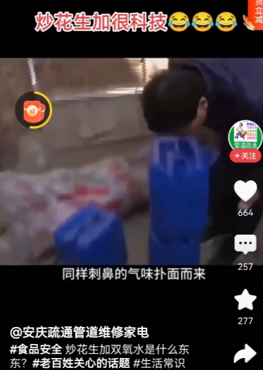 炒花生加双氧水,太科技了! 一个炒货厂在炒制花生时,用农药喷雾器对花生喷洒双氧水,被检查人员发现时,厂长一副无所谓的样子,说是消毒! 这样的加工食品你还敢买吗?敢吃吗? 这种的老板应该要追究刑事责任,罚他个倾家荡产,才能刹住社会歪风乱象!