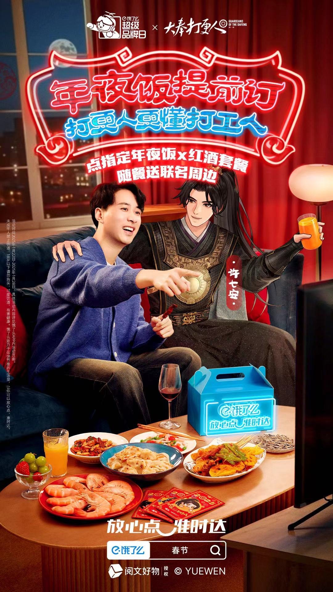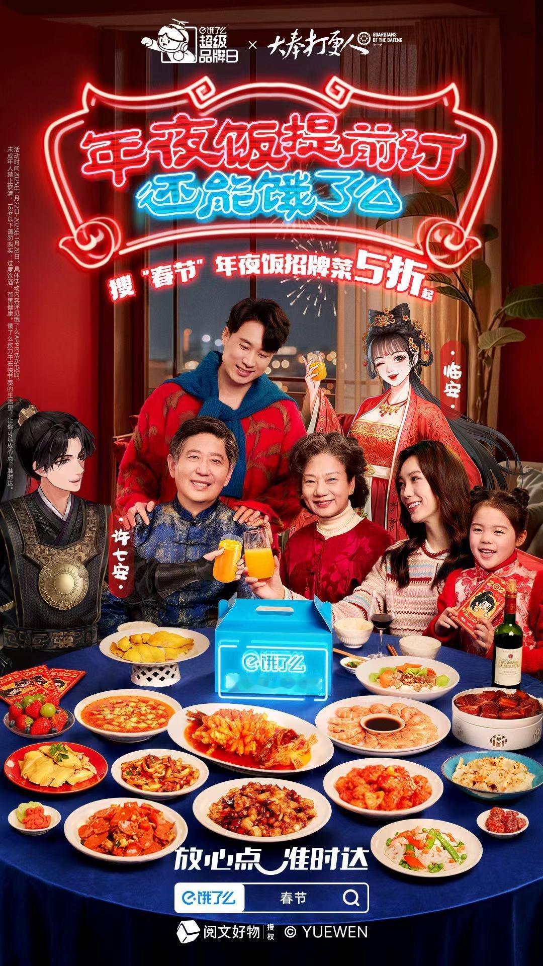 蛇年到,好运到,1月22日-1月28日上饿了么搜“春节”,一键预订招牌年夜饭,轻松搞定全家舌尖需求,仪式感拉满不费力,选择配送时间,现在就可以提前预定除夕的年夜饭套餐~敲黑板,还有机会解锁大奉打更人对联福字三件套联名周边,快上饿了么安排起来,解放双手这个春节解放自己的双手!