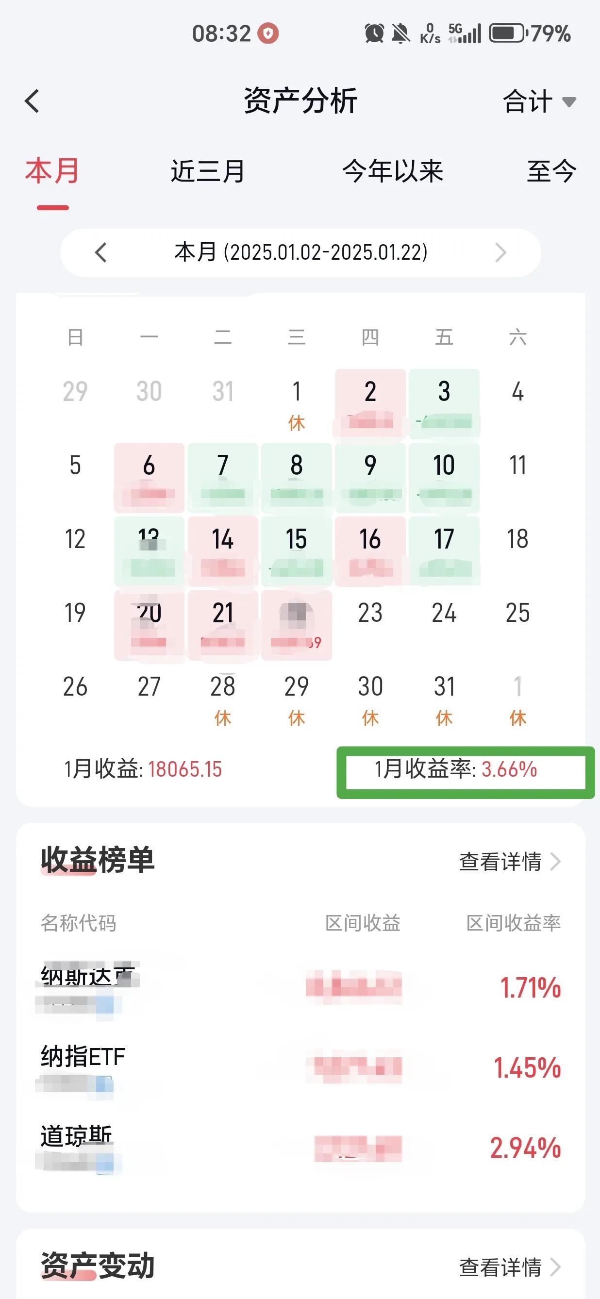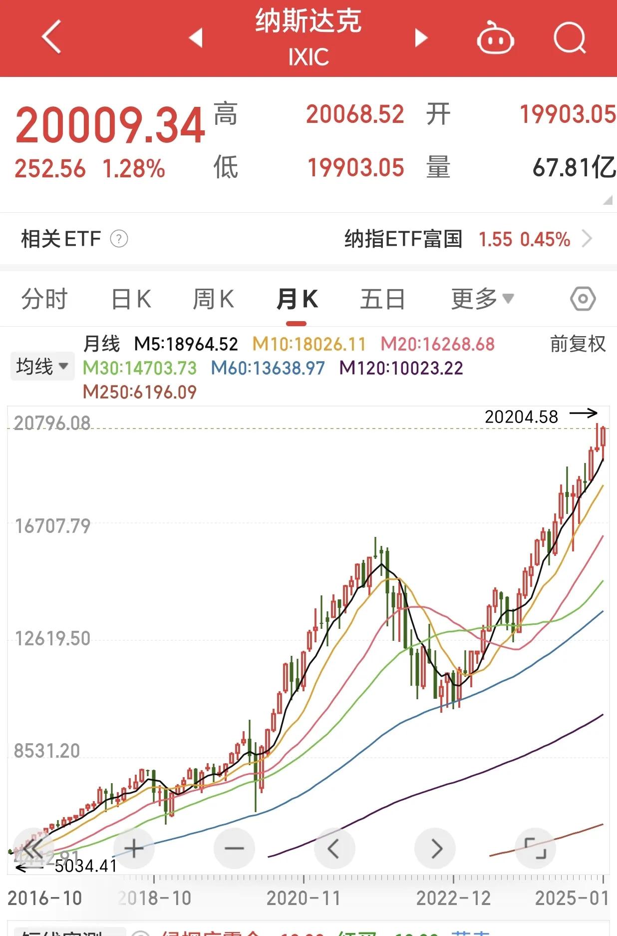 投资纳斯达克的感受! 买了就躺平了,逢低只买不卖。 从12月切换到纳斯达克ETF后,刚开始也很紧张,但是随着纳指的上涨,有了获利后心情慢慢平复了很多。然而投资也不是一帆风顺的,纳指在12月16纳指新高后出现了较大的下跌,12月18日下跌3.56%,堪称暴跌,对于小白,找原因,看新闻,心理还是好害怕是不是大顶,毕竟纳指涨了这么多了。各种担心和恐惧,心神不安,晚上也开始关注美股走势和新闻。 现在看来过去一月多的折磨对于投资纳指的投资者完全是多余的,真的是“杞人忧天”。 经历了整整一月下跌,而正好利用这一时期的下跌我克服心理恐惧逆向加仓,并且🈵仓持有,元旦后美股最后一个大跌,持有收益仅仅不到2%,还是有点恐惧的,甚至思考要不要减仓?还会不会跌?亏了怎么办? 纳指终究是纳指。随着老美12月经济数据和CPI的公布,1月15号美股强劲反弹,一扫我短暂的恐惧。到今天,纳指已经再次站上20000点。而本月领收益已经达到3.66%,算上今天的收益本月是完美的接近5%。 曾经A股让我高攀不起,今天我拥抱纳指,逆袭投资。 分享美股心得 1月我完美跑赢95%投资者。