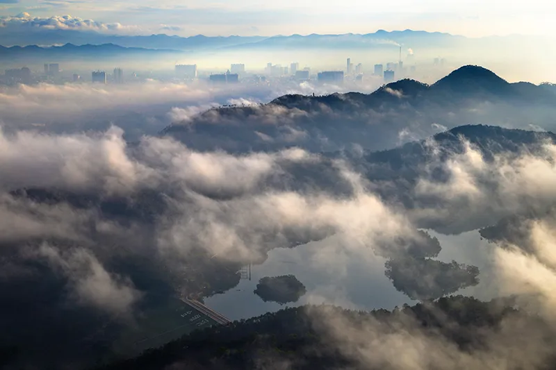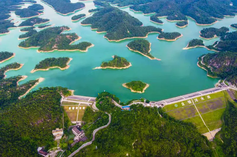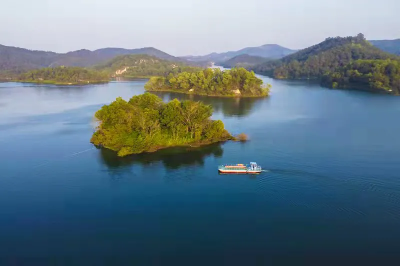 金银湖的水面面积约3800亩,12个大小岛屿点缀其中,烟波缥缈,青山如黛。罗定市苹塘镇