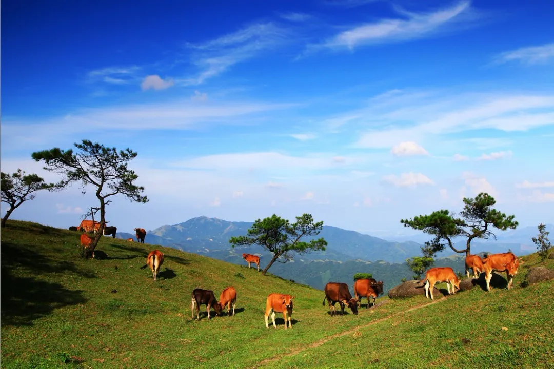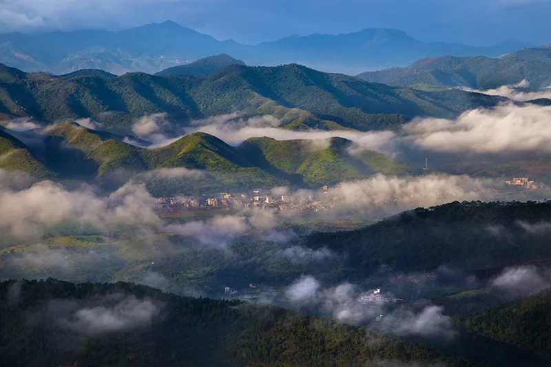 “中国美丽田园”罗定市苹塘镇属喀斯特地貌,有独特的盆地性气候,晨曦初露,群峰耸立在飘渺的云雾中,景色壮美。罗定八排山位于罗定市船步镇,海拔1080.5米,一山连三市(罗定市、阳春市、信宜市),是广东最美十大高山草原之一,被誉为“广东香格里拉”。