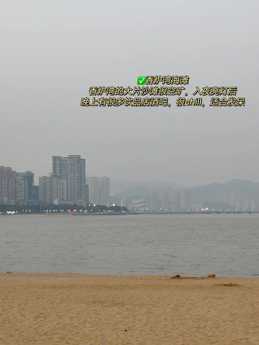 ✔️香炉湾海滩:吃饱喝足过马路,香炉湾沙滩晚上有很多饮品店酒吧,很chill