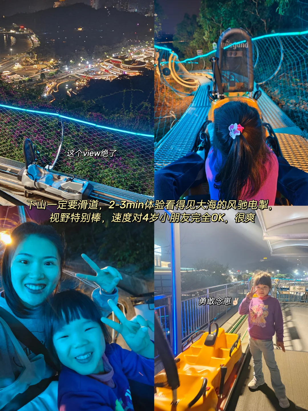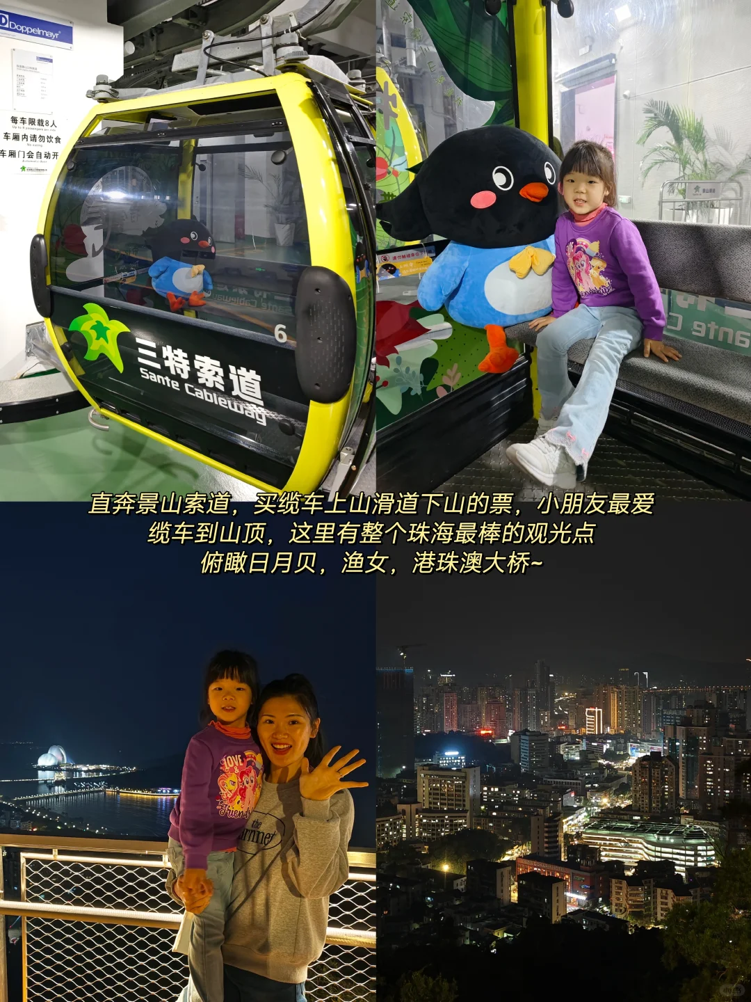 ✔️景山公园:直奔景山索道,买缆车上山滑道下山的票,小朋友最爱。缆车到山顶,这里有整个珠海最棒的观光点,俯瞰日月贝,渔女,港珠澳大桥。下山一定要滑道,2-3min体验看得见大海的风驰电掣,速度对4岁小朋友完全OK