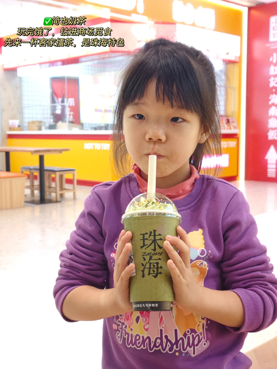 ✔️简也奶茶:玩完饿了,钻进商场觅食,先来一杯客家擂茶,是珠海特色