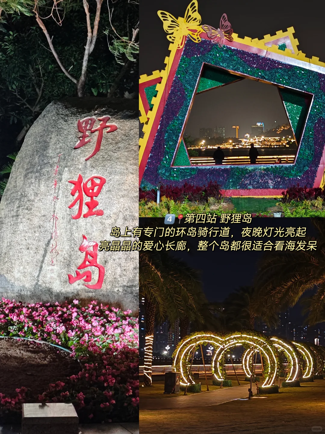 岛上有专门的环岛骑行道,夜晚灯光亮起,亮晶晶的爱心长廊,整个岛都很适合看海发呆