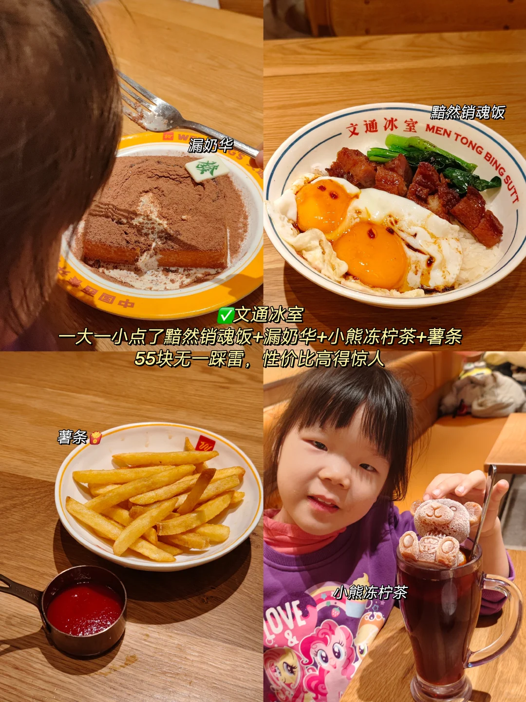✔️文通冰室:一大一小点了黯然销魂饭+漏奶华+小熊冻柠茶+薯条,55块无一踩雷,性价比高得惊人