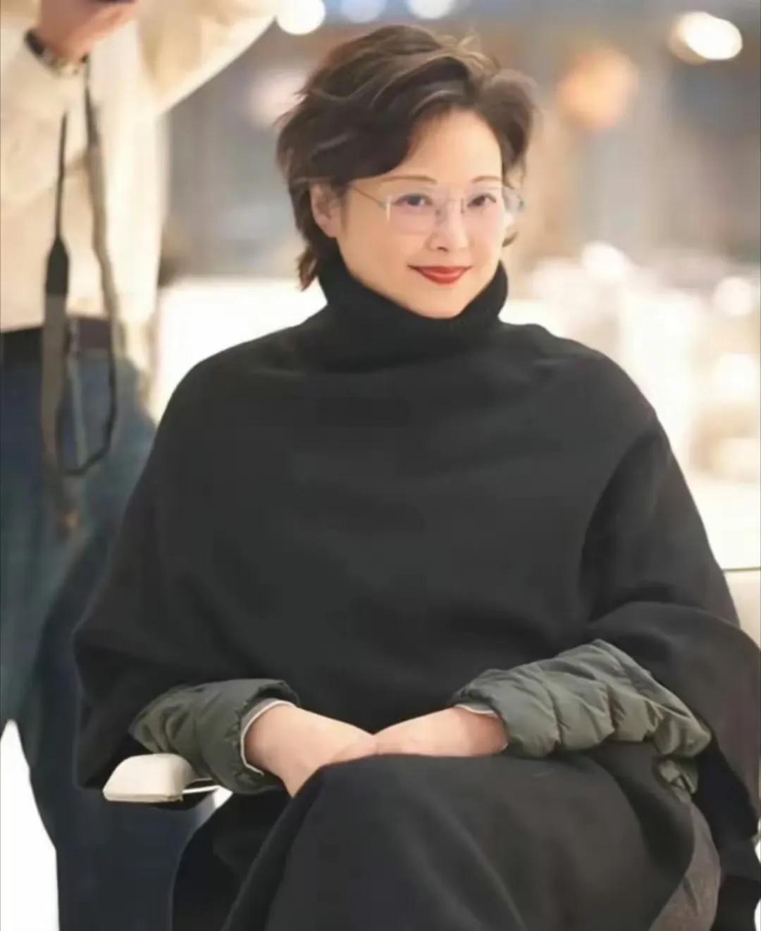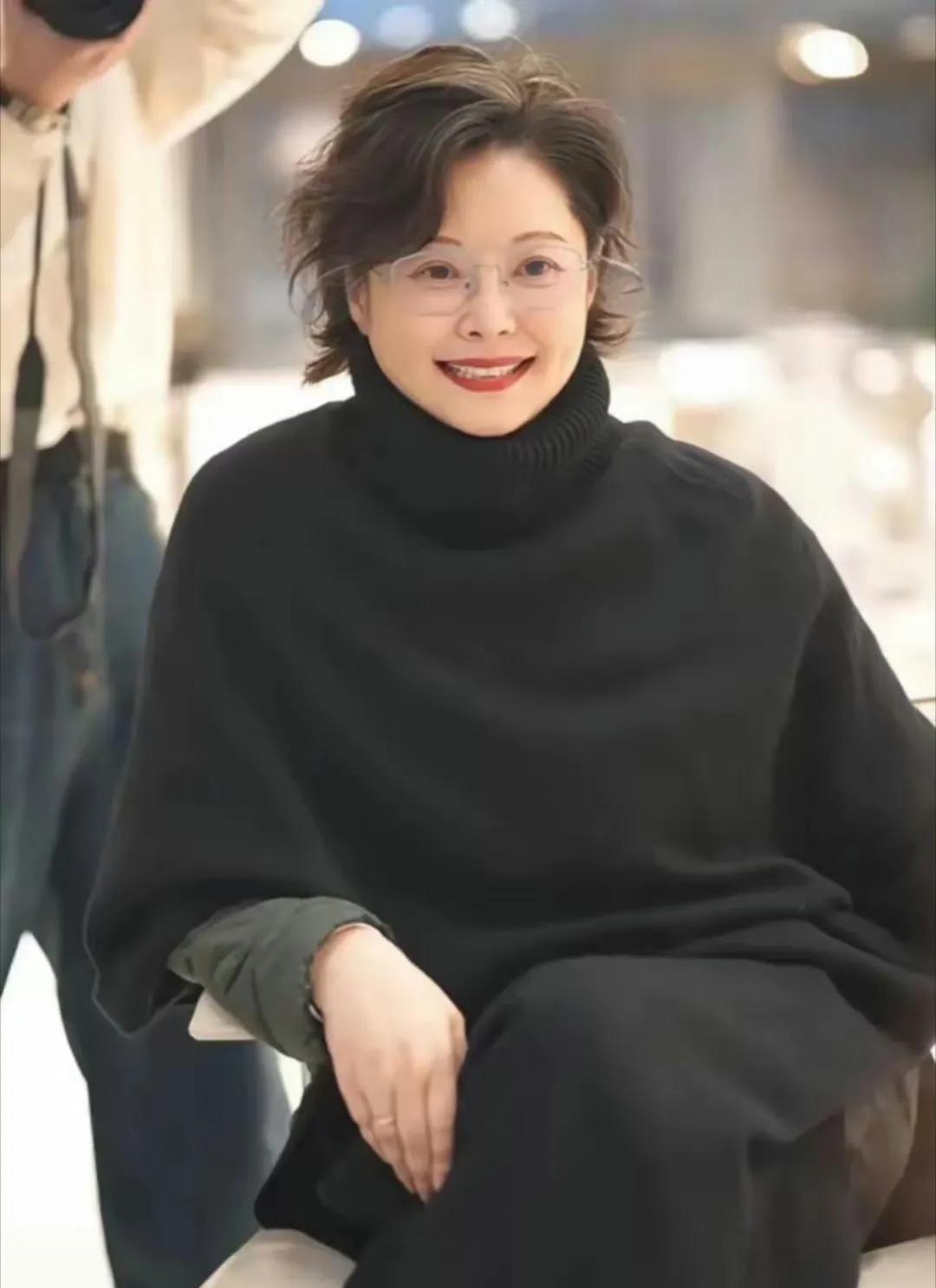 袁立属于越胖越美的类型,身穿黑色针织斗篷内搭羽绒服,这种穿法很新颖,胖了更显富态,身上柔和感更强,52岁的她简简单单一个淡妆就很显青春年少。