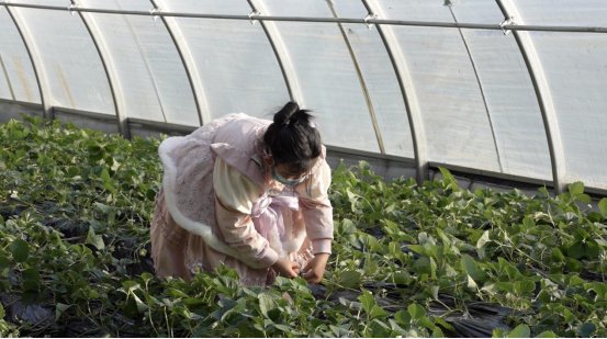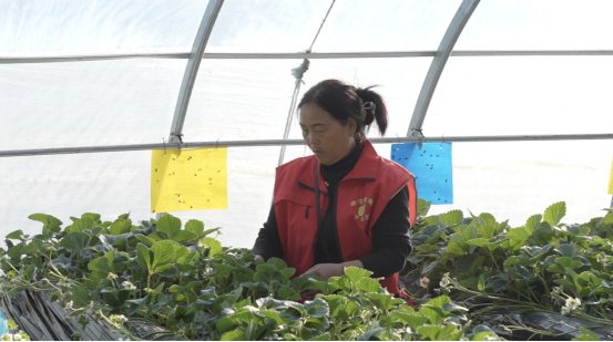 采摘大棚内,温暖的气息裹挟着草莓的香甜扑面而来……一颗颗草莓,有的圆润饱满,有的俏皮地尖着脑袋,引人垂涎,既让游客体验采摘乐趣,也鼓起了村民的“钱袋子”。